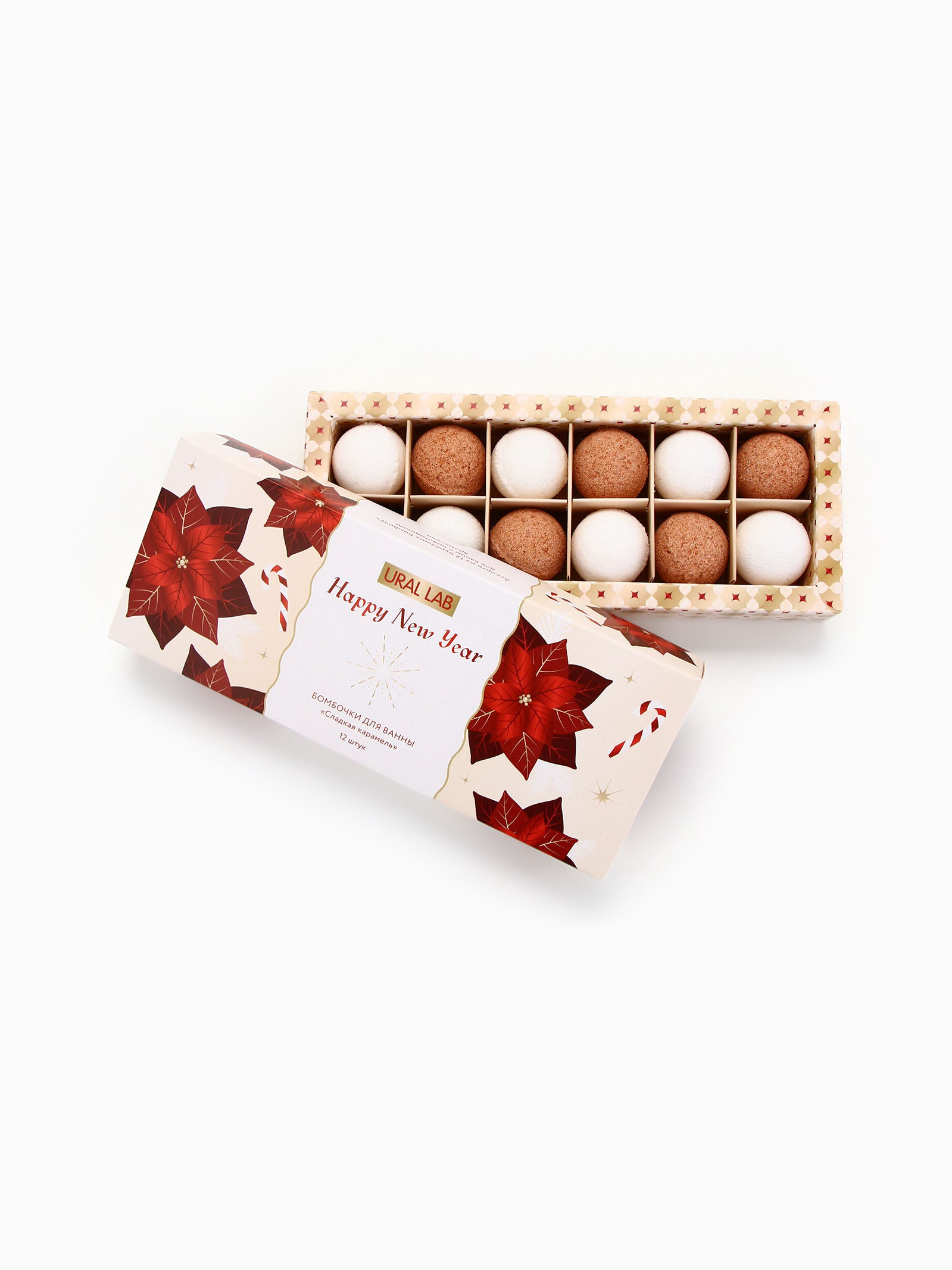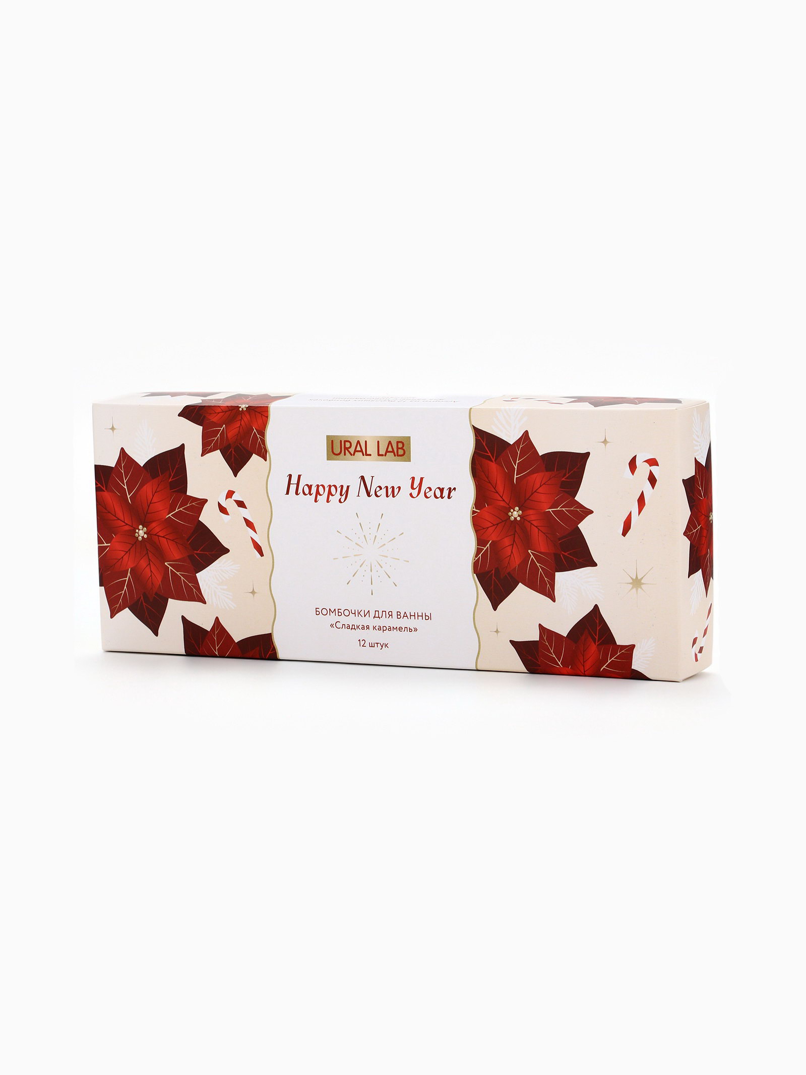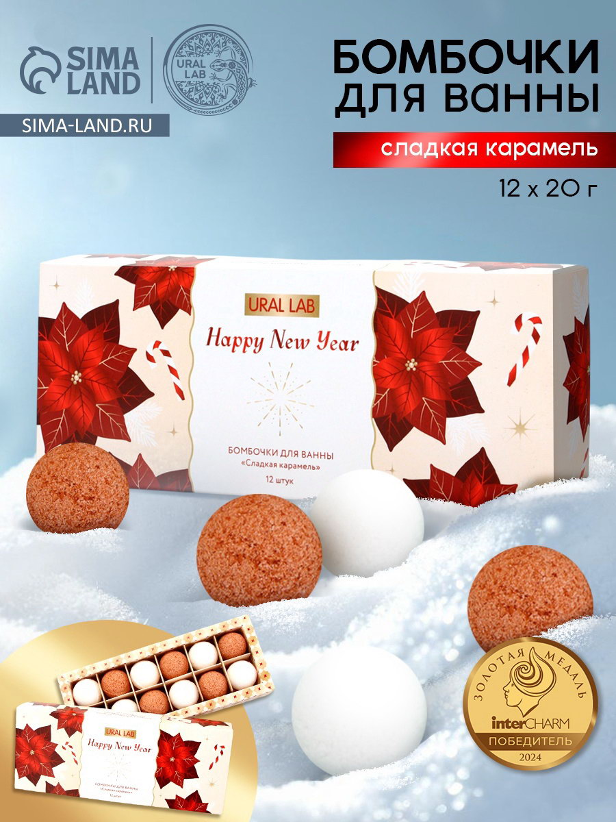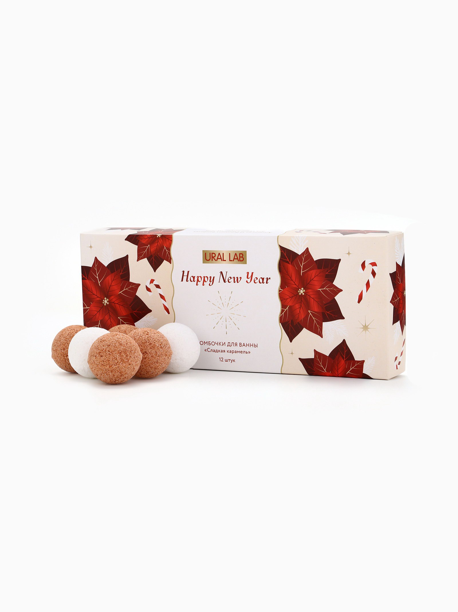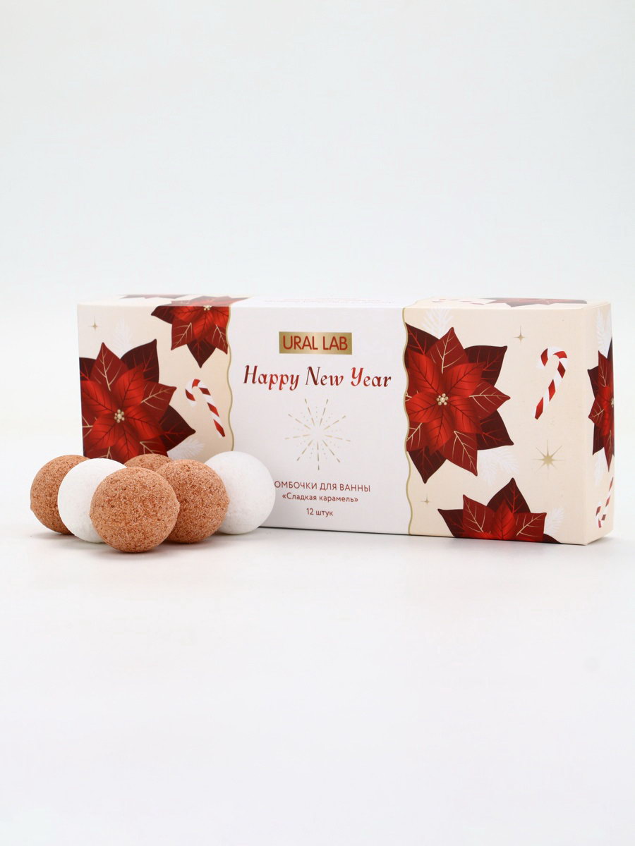 Бомбочки для ванны Happy New Year, аромат сладкая карамель, набор 12 шт. x 20 г, URAL LAB, Россия