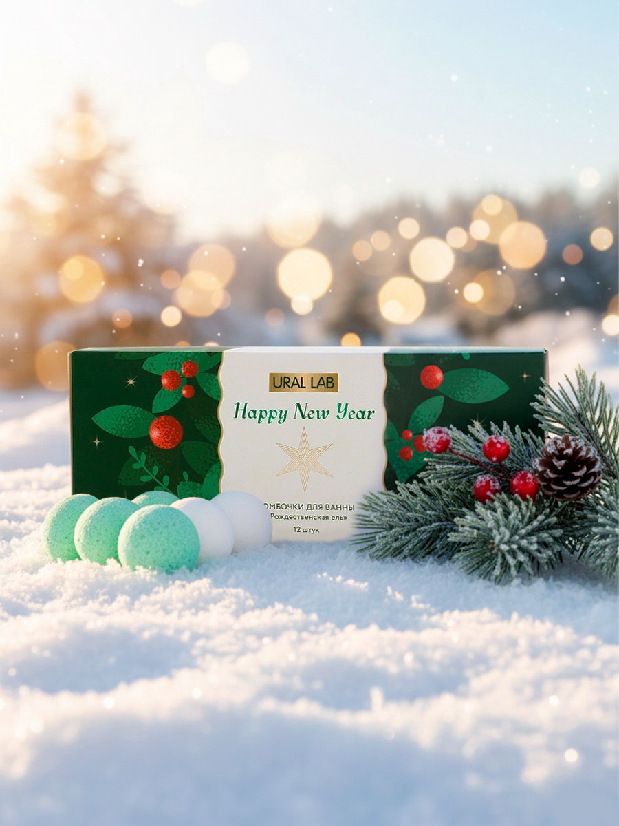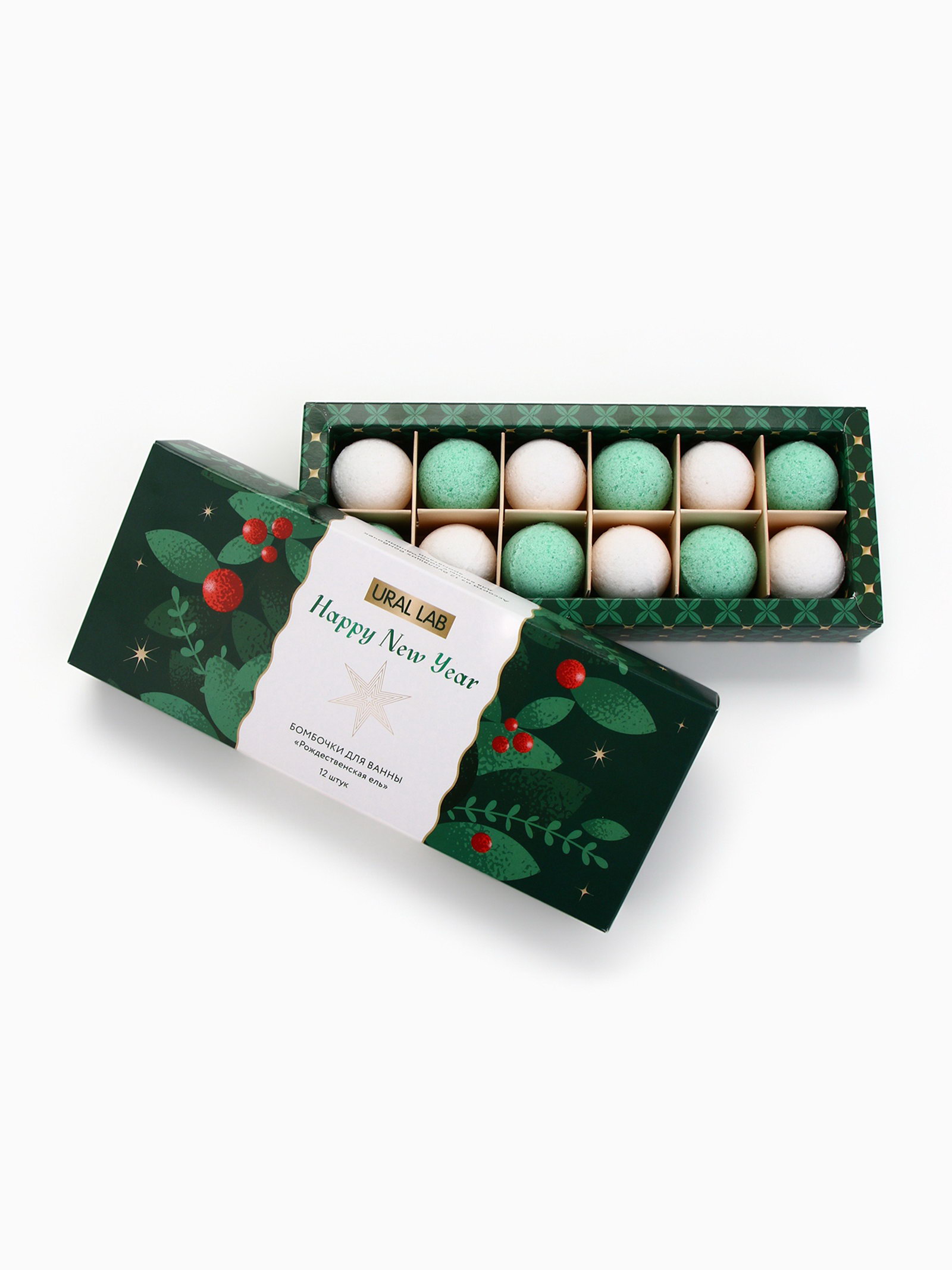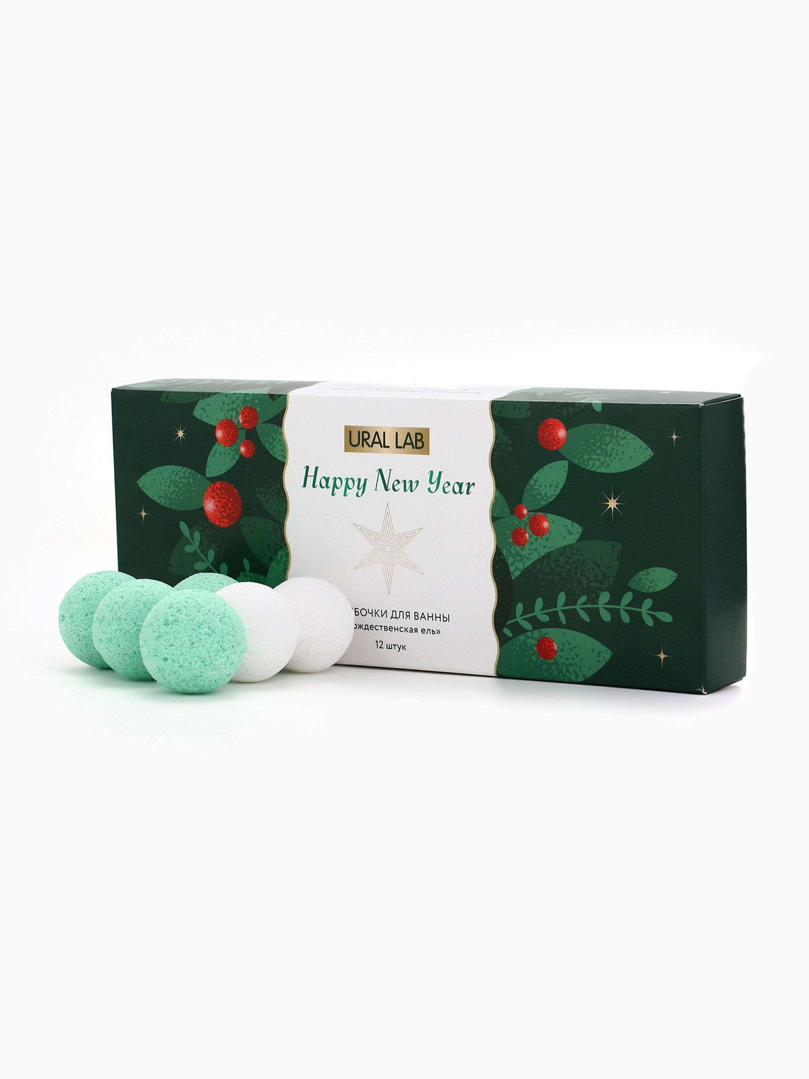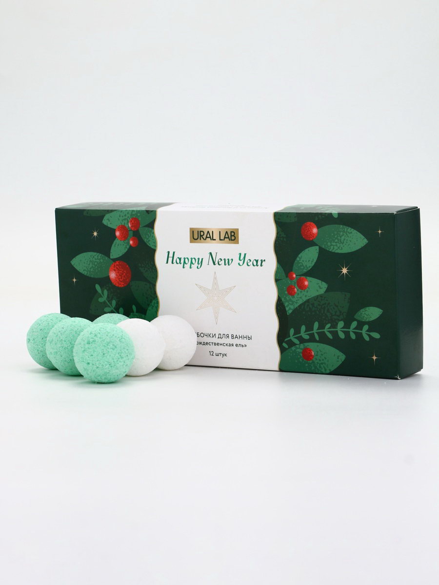 Бомбочки для ванны Happy New Year, аромат рождественская ель, набор 12 шт. x 20 г, URAL LAB, Россия
