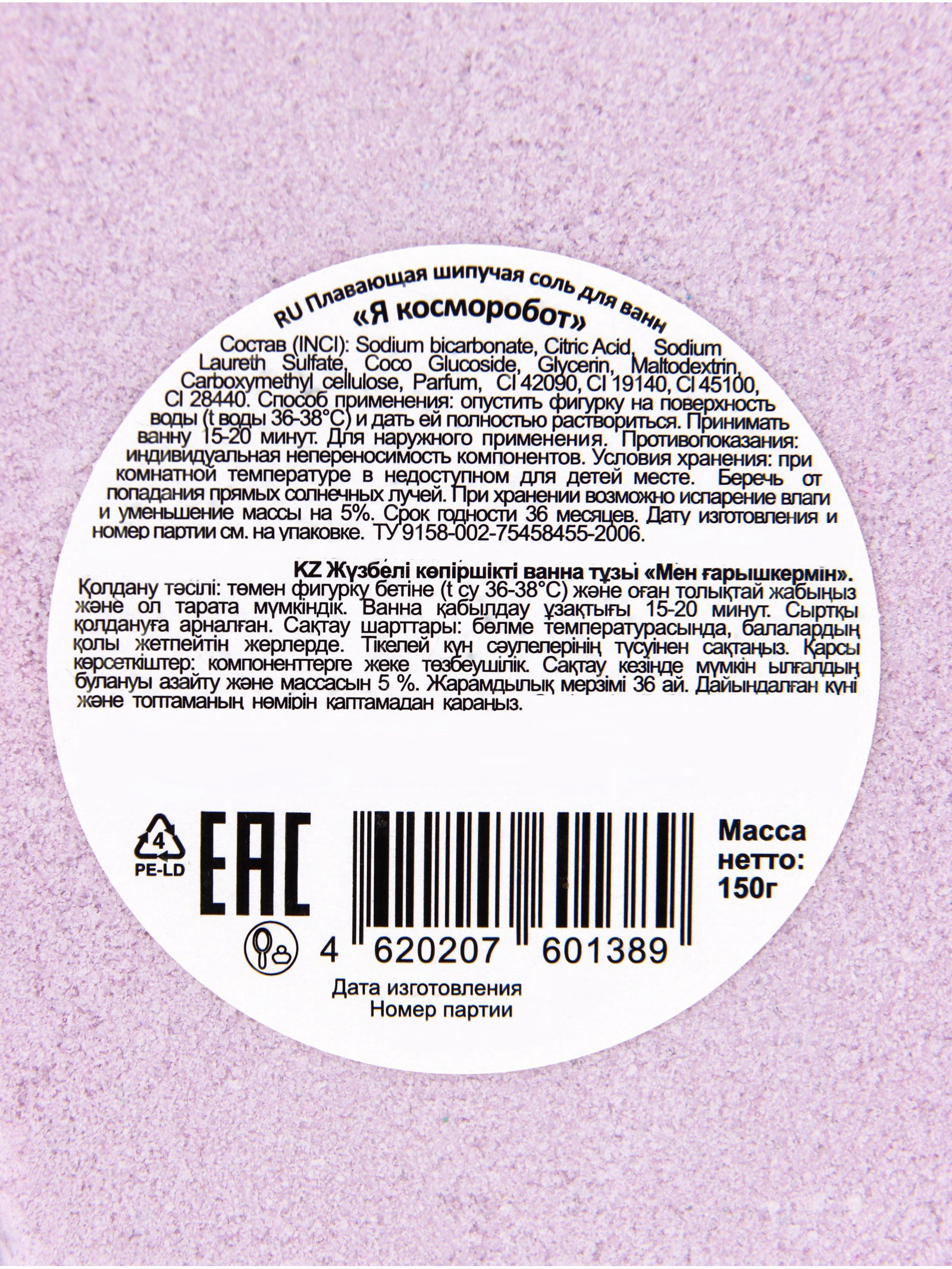 Размер упаковки: 6 x 3 x 9 см. tnved: 3307300000 Температурное ограничение: Нет Температурное ограничение: Нет Аромат: Вишня Набор: Нет Вес, г: 150 Форма: Фигурная Особенности: С радужным хвостом Погрузитесь в космическое приключение с плавающим Космороботом SO HAPPY! Яркие вставки и насыщенный аромат вишни делают купание незабываемым и увлекательным. Косморобот оживает в воде, создавая атмосферу веселья и радости, превращая обычное купание в настоящее космическое приключение. Внимание: Косморобот очень застенчивый, поэтому опускать его в воду нужно аккуратно, чтобы он полностью раскрыл своё волшебство. При правильном использовании малыш сможет наблюдать, как фигурка плавает, вспыхивает яркими красками и радует ароматом сочной вишни. Средство безопасно для ребёнка: не окрашивает кожу и поверхность ванны, не вызывает раздражения, а увлекательная фигурка делает купание игрой, стимулируя воображение и создавая радостные эмоции. SO HAPPY Косморобот это весёлое, ароматное и безопасное купание, превращающее вечерний ритуал в маленькое космическое приключение. Состав (INCI): Sodium bicarbonate, Citric Acid, Sodium Laureth Sulfate, Coco Glucoside, Glycerin, Maltodextrin, Carboxymethyl cellulose, Parfum, CI 42090, CI 19140, Cl 45100, Сl 28440. Способ применения: опустить шар (фигурку) в ванну, наполненную водой (t воды 36-38 ℃), и дать ему (ей) полностью раствориться. Принимать ванну 15-20 минут. | ||