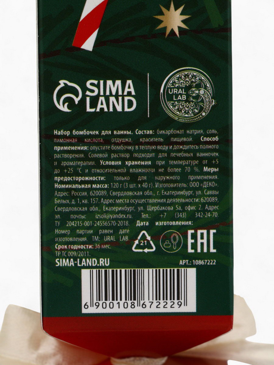 Размер упаковки: 4 x 17.5 x 4 см. tnved: 3307300000 Аромат: Леденец Форма: Шар Особенности: Без особенностей Набор: Да Вес, г: 120 Тематика праздника: Новый год Составляющие набора: Бомбочка для ванн Возраст: Для взрослых Область применения: Для тела Тематика подарка: Уходовая косметика Адресат: Без адресата Для кого: Для женщины Темпер. ограничение НЕ НИЖЕ ℃: +5 Темпер. ограничение НЕ ВЫШЕ ℃: +25 | ||