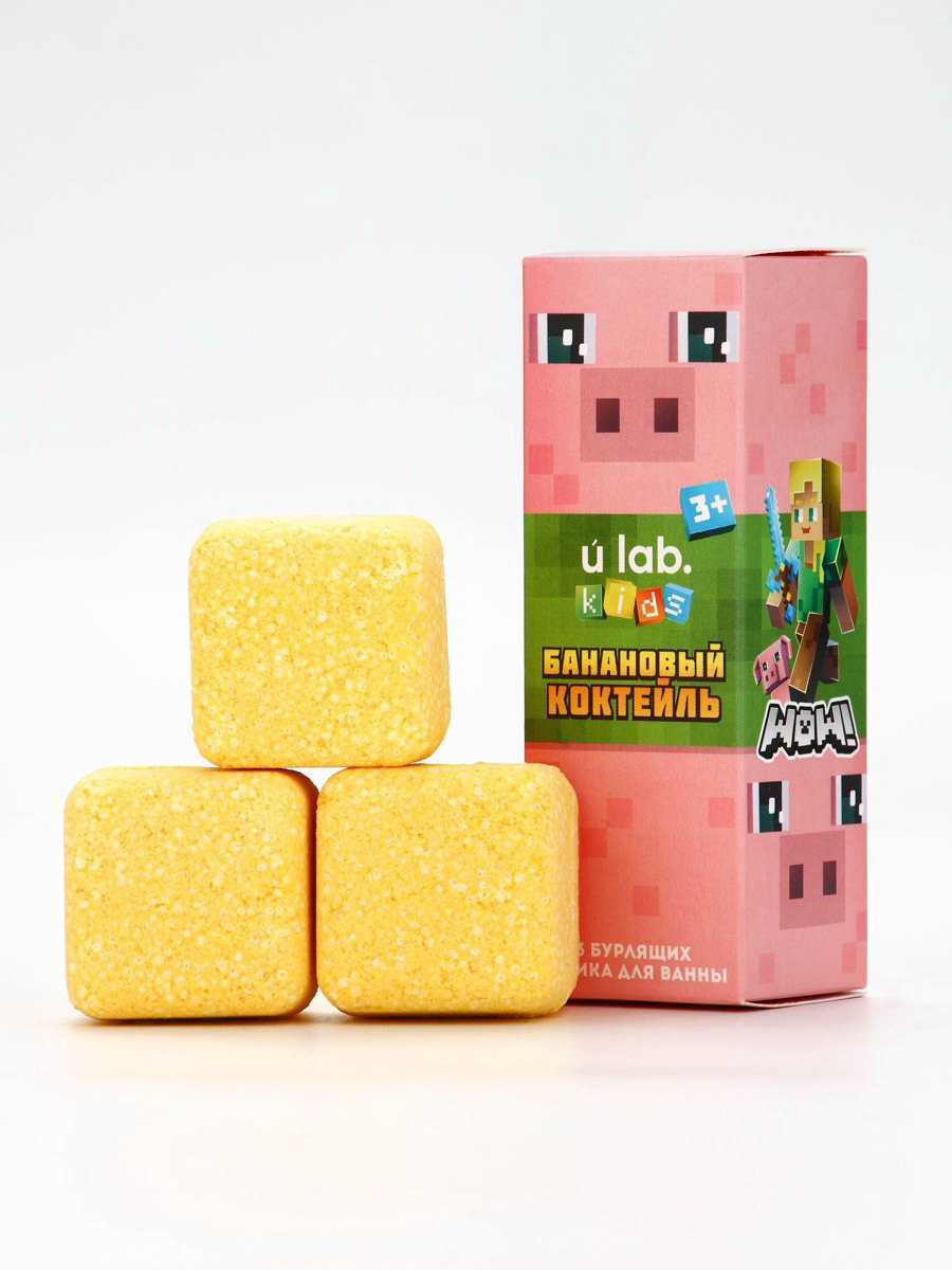 Бомбочки для ванны "Кубики", набор 3 шт. x 70 г, аромат банановый коктейль, URAL LAB, Россия