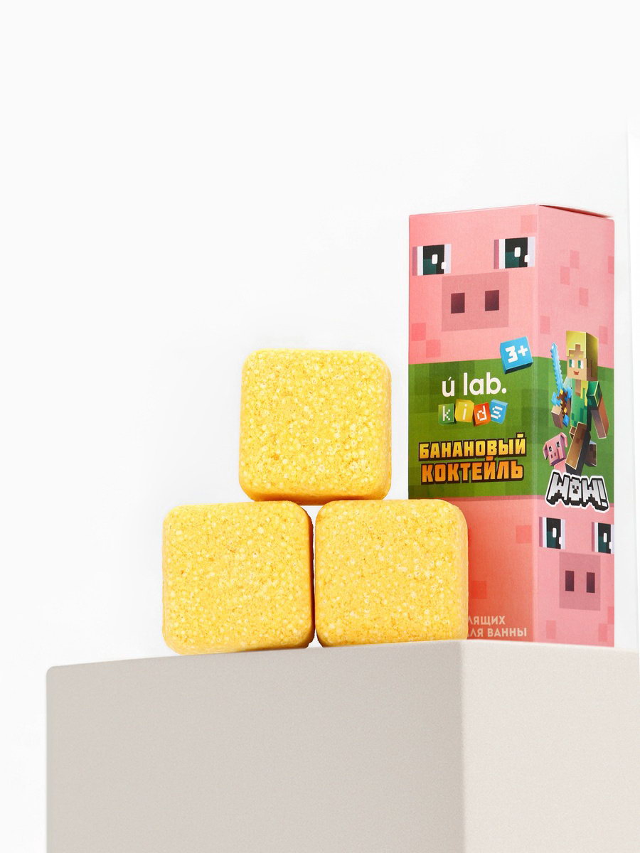 Бомбочки для ванны "Кубики", набор 3 шт. x 70 г, аромат банановый коктейль, URAL LAB, Россия