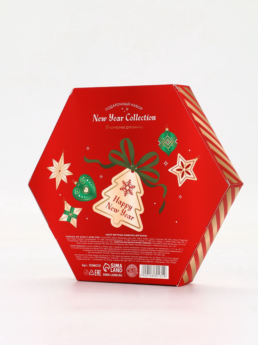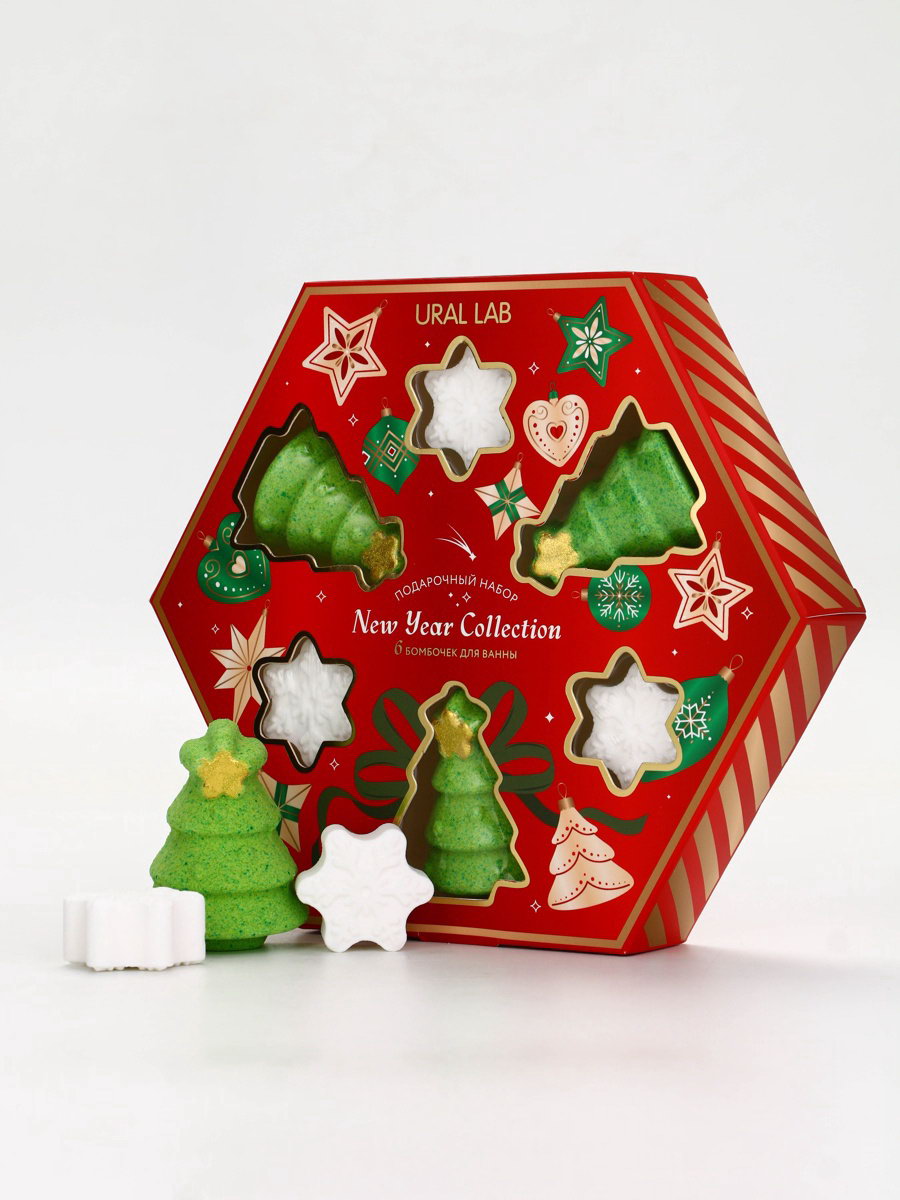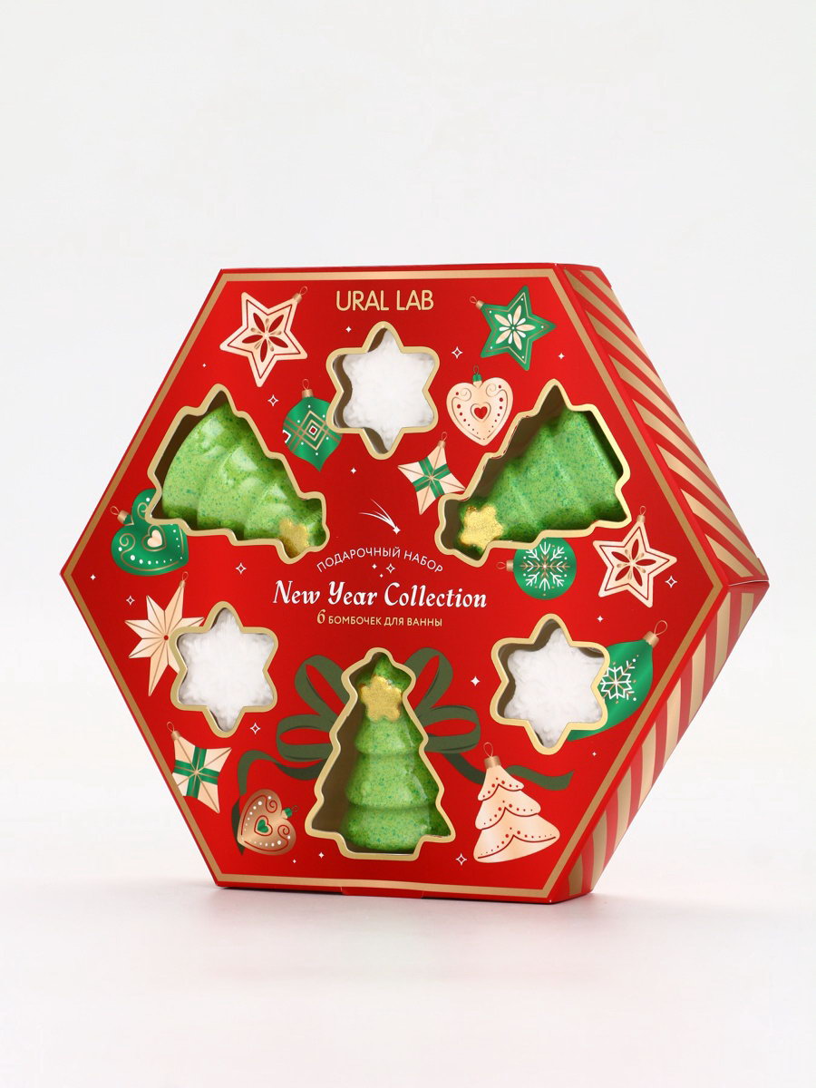 Бомбочки для ванны New Year Collection, набор 6 шт., 3.8x23x19.9 см., URAL LAB, Китай