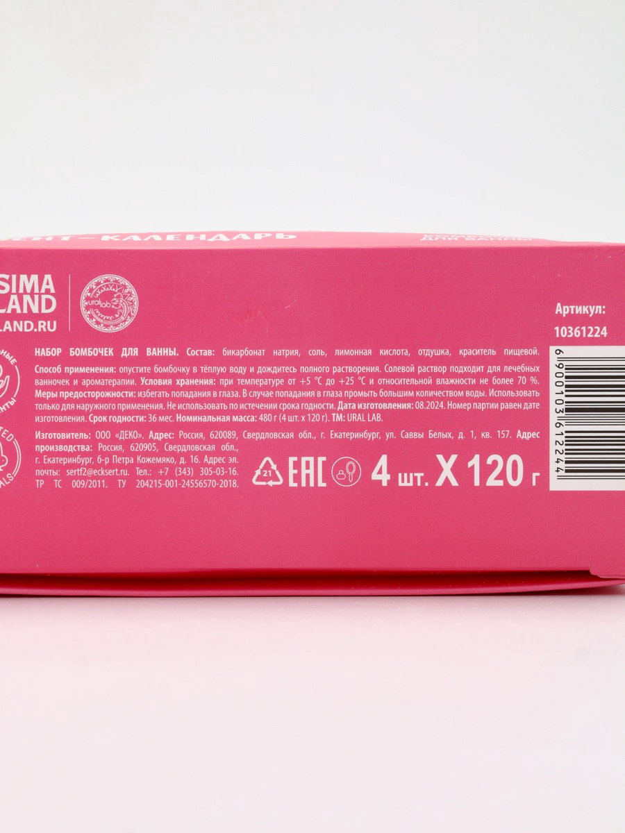 Адвент-календарь "С Новым годом", бомбочки для ванны, 4 шт. х120 г, URAL LAB, Россия