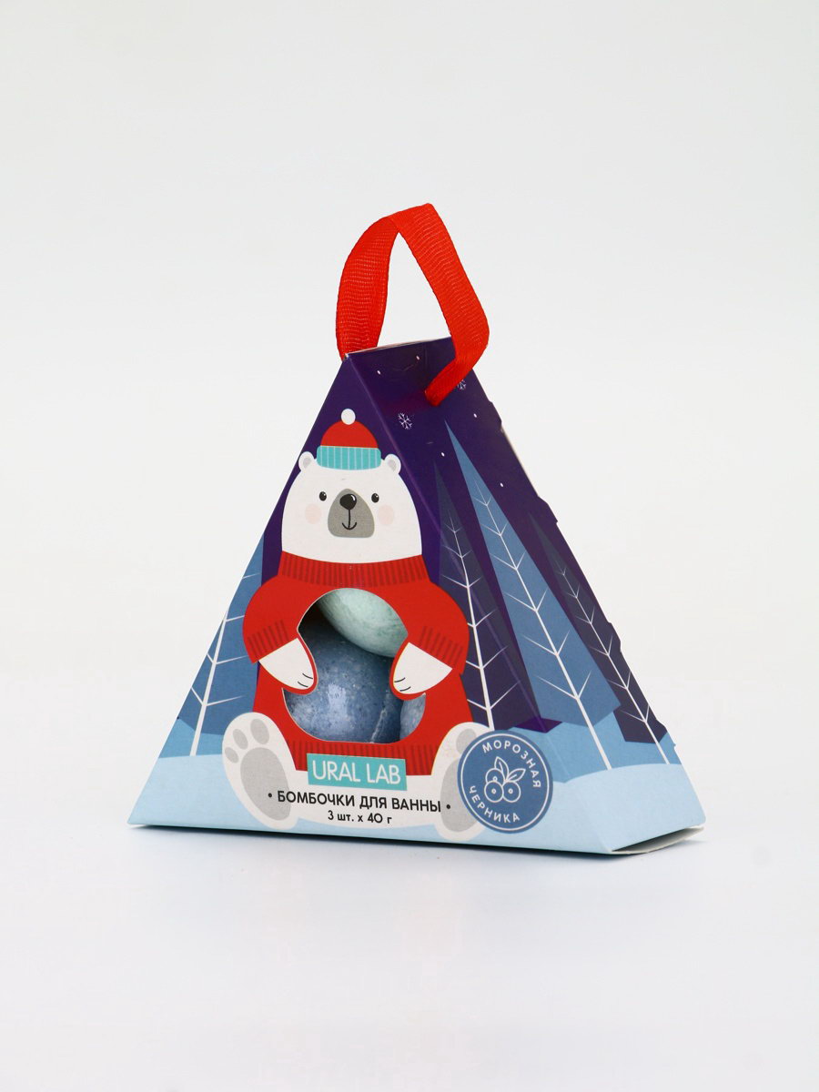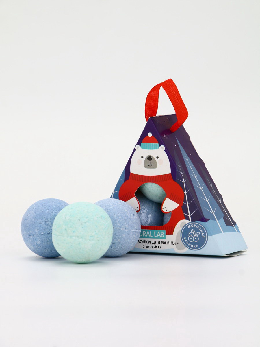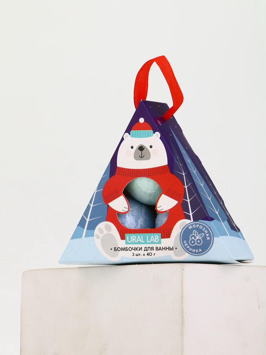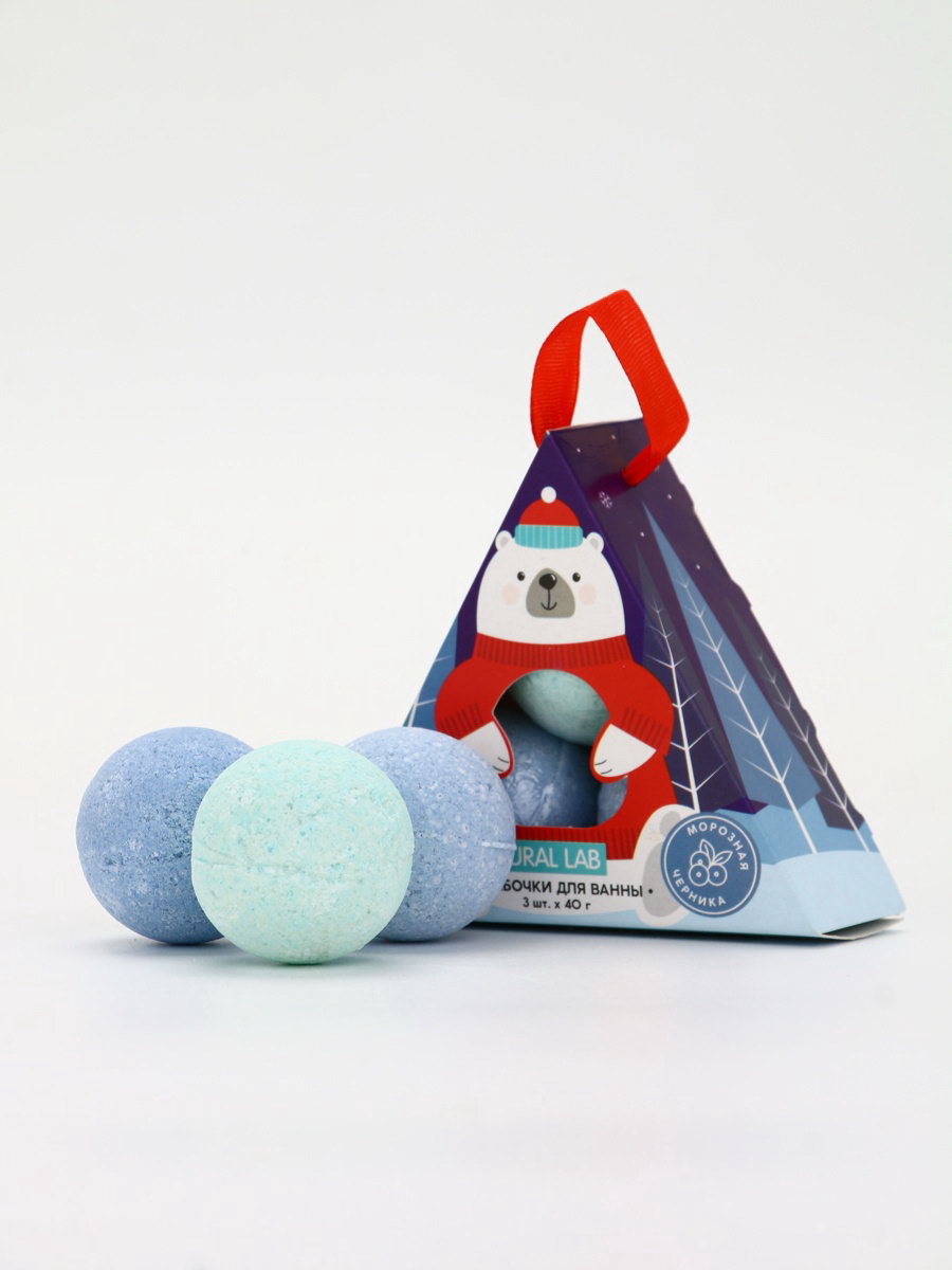 Бомбочки для ванны "Мишка", 3 шт x 40 г, морозная черника, URAL LAB, Россия