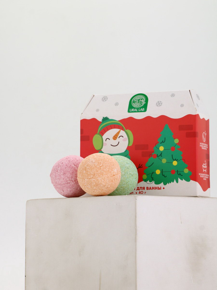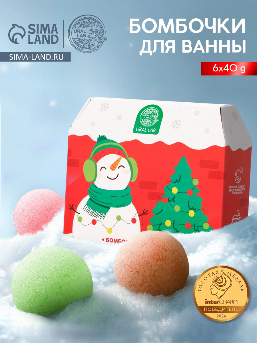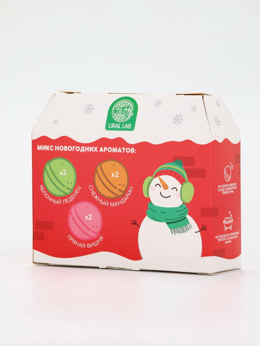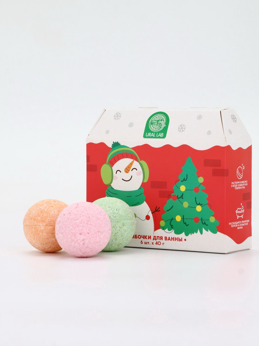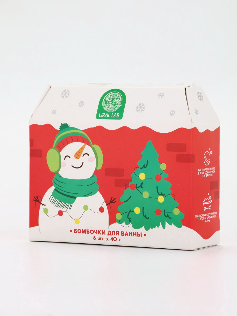 Бомбочки для ванны в домике "Снеговик", набор 6 шт x 40 г, URAL LAB, Россия
