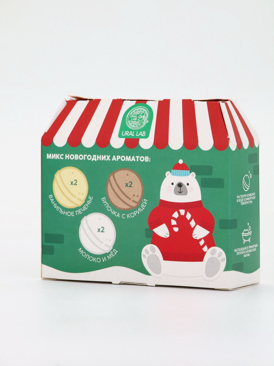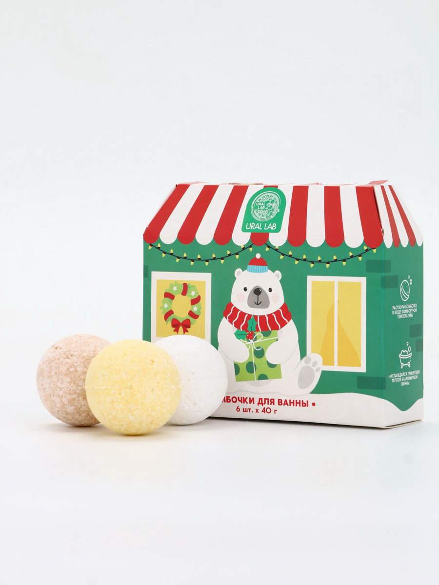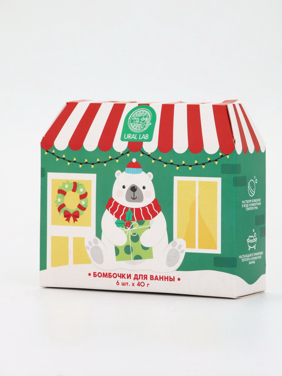Бомбочки для ванны в домике "Медведь", набор 6 шт x 40 г, URAL LAB, Россия