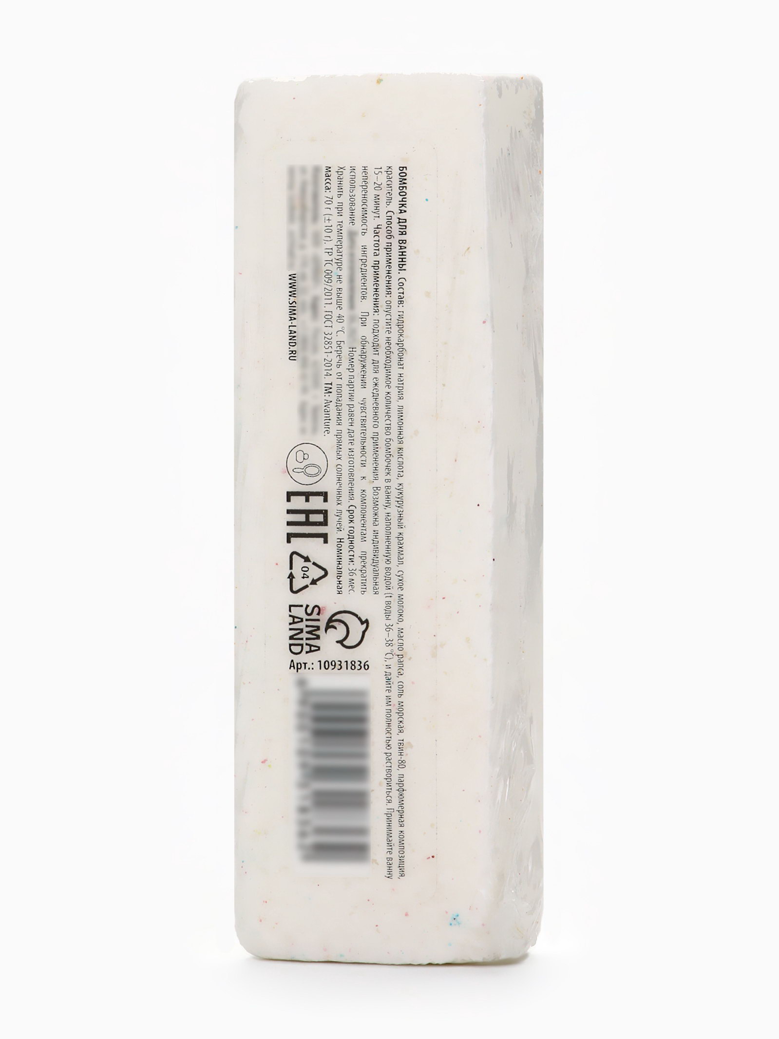 Бомбочка для ванны прямоугольная "Снеговик", 70 г, URAL LAB, Россия