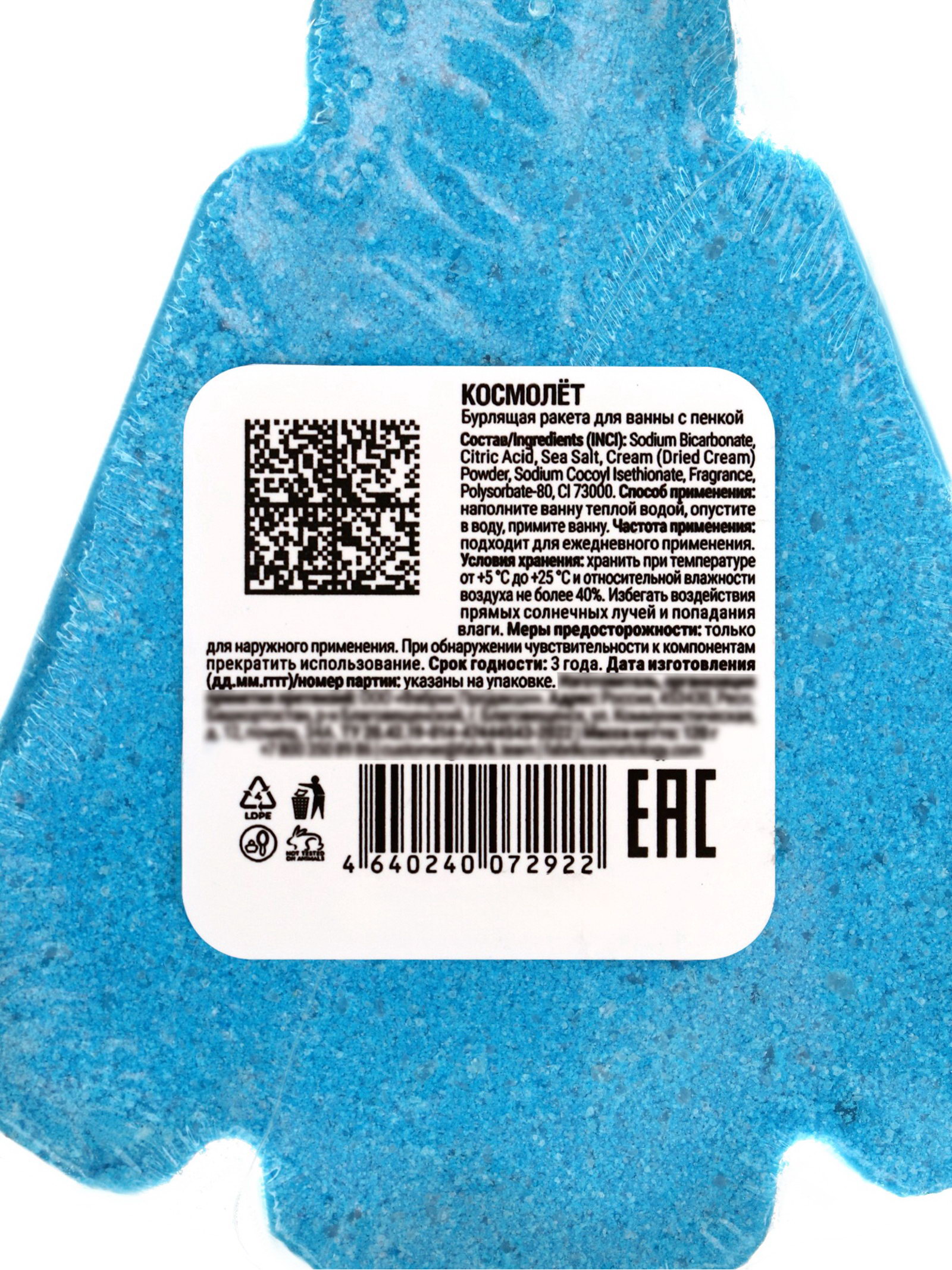 Возраст: Взрослый, Детский Размер упаковки: 7 x 3 x 10 см. tnved: 3307300000 Набор: Нет Набор: Нет Вес, г: 120 Температурное ограничение: Нет Особенности: Без особенностей Форма: Фигурная Адресат: Без адресата Вид упаковки: Термоусадочная плёнка Аромат: Сочные фрукты Тематика подарка: Гигиена Тематика праздника: Универсальная тематика Для кого: Унисекс Бурлящая ракета для ванны с пенкой "Космолёт" FABRIK Cosmetology, 120 г это увлекательное космическое приключение прямо в вашей ванной. При попадании в воду ракета бурлит, создавая пышную и нежную пену, а яркий фруктовый аромат наполняет ванную комнату радостью и хорошим настроением. "Космолёт" превращает обычное купание в весёлое и ароматное путешествие среди звёзд. Состав: Sodium Bicarbonate, Citric Acid, Sea Salt, Cream (Dried Cream) Powder, Sodium Cocoyl Isethionate, Fragrance, Polysorbate-80, CI 73000 (Бикарбонат натрия, лимонная кислота, морская соль, сухие сливки, содиум кокоил изетионат, отдушка, ПАВ, пищевой краситель). Особенности ракеты "Космолёт":