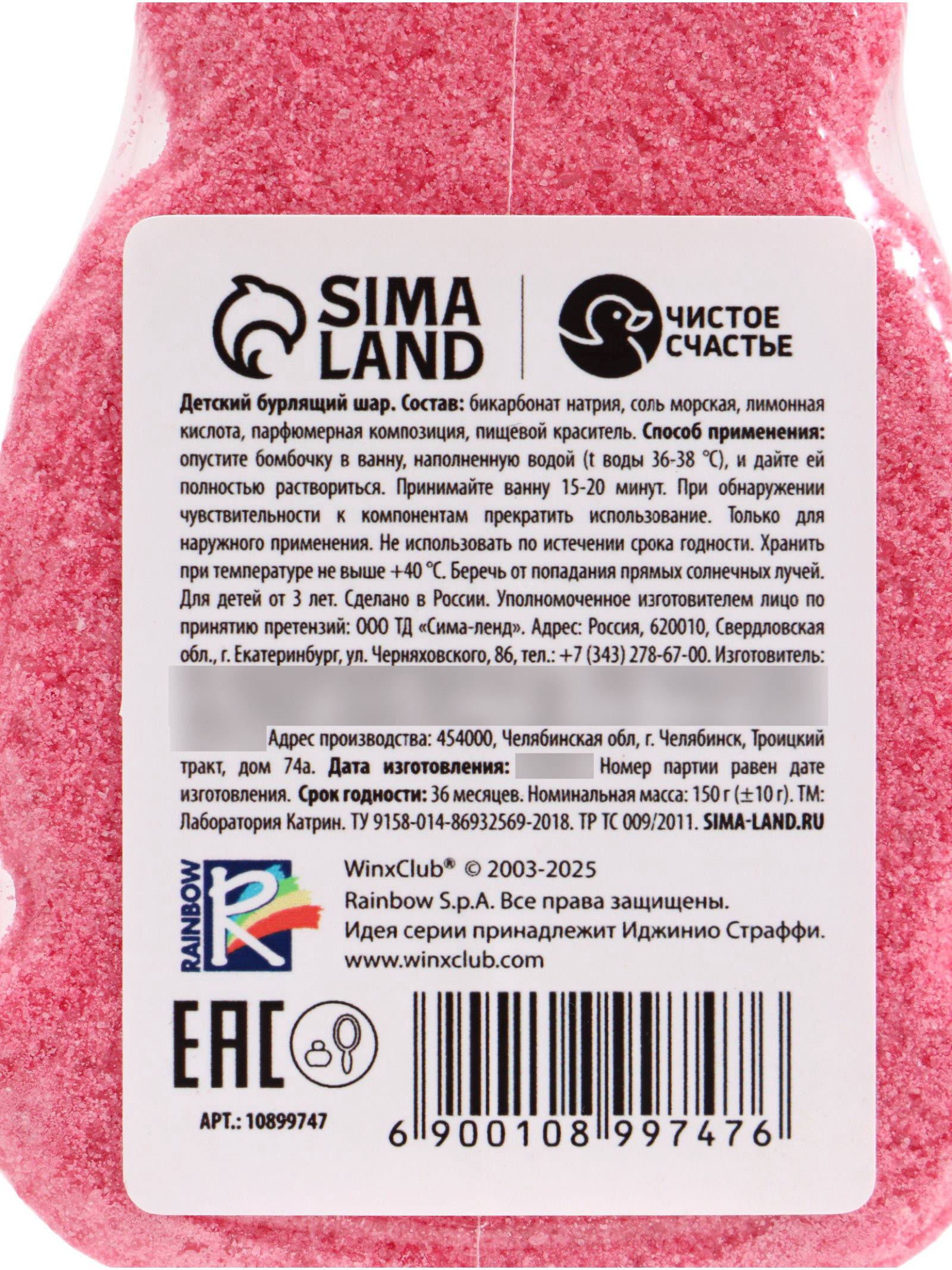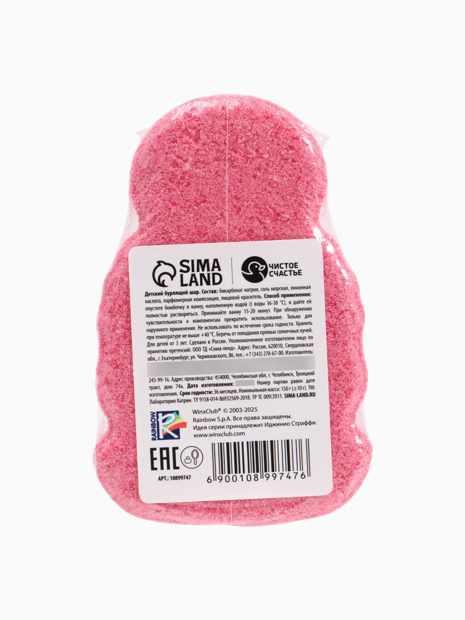 Бомбочка для ванны формовая детская, розовая, 150 г, Винкс, WINX, Россия