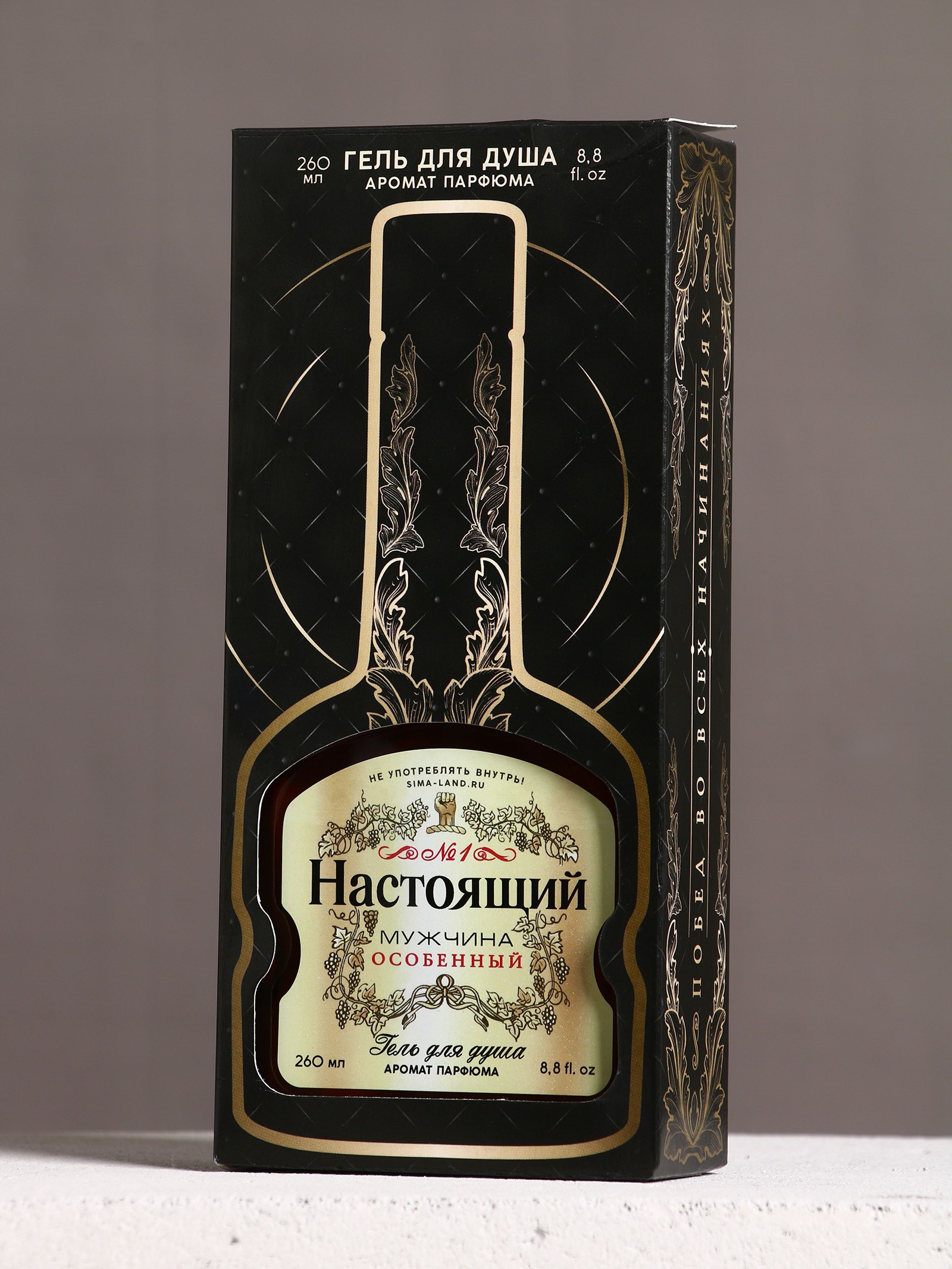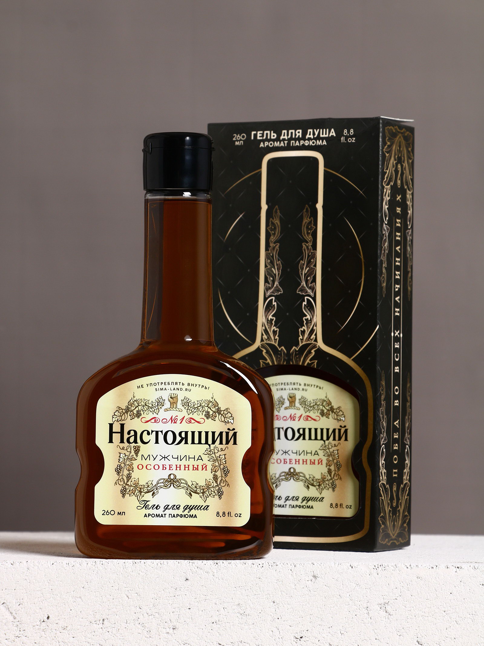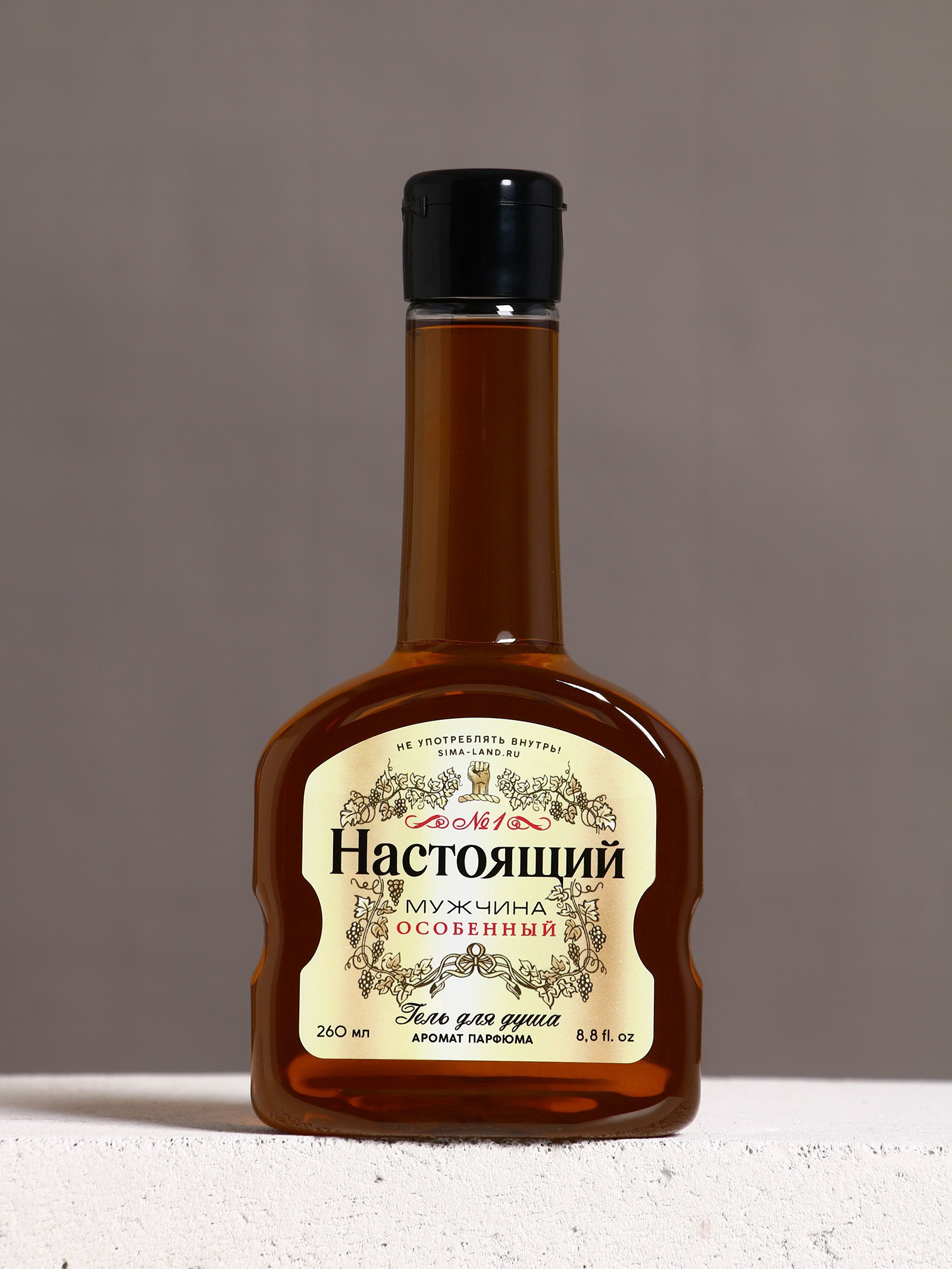 Гель для душа во флаконе коньяка "Настоящий мужчина", 260 мл, аромат мужского парфюма, HARD LINE, 260 мл., Чистое счастье, Россия