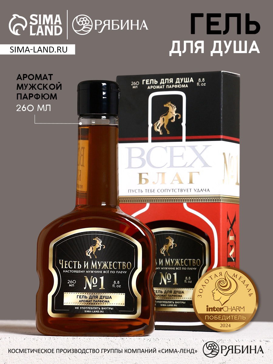 Гель для душа коньяк "Честь и мужество", 260 мл, аромат мужского парфюма, HARD LINE, 260 мл., Чистое счастье, Россия