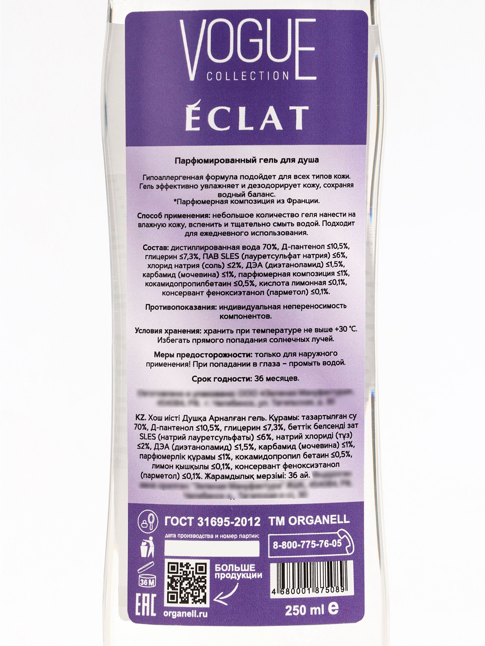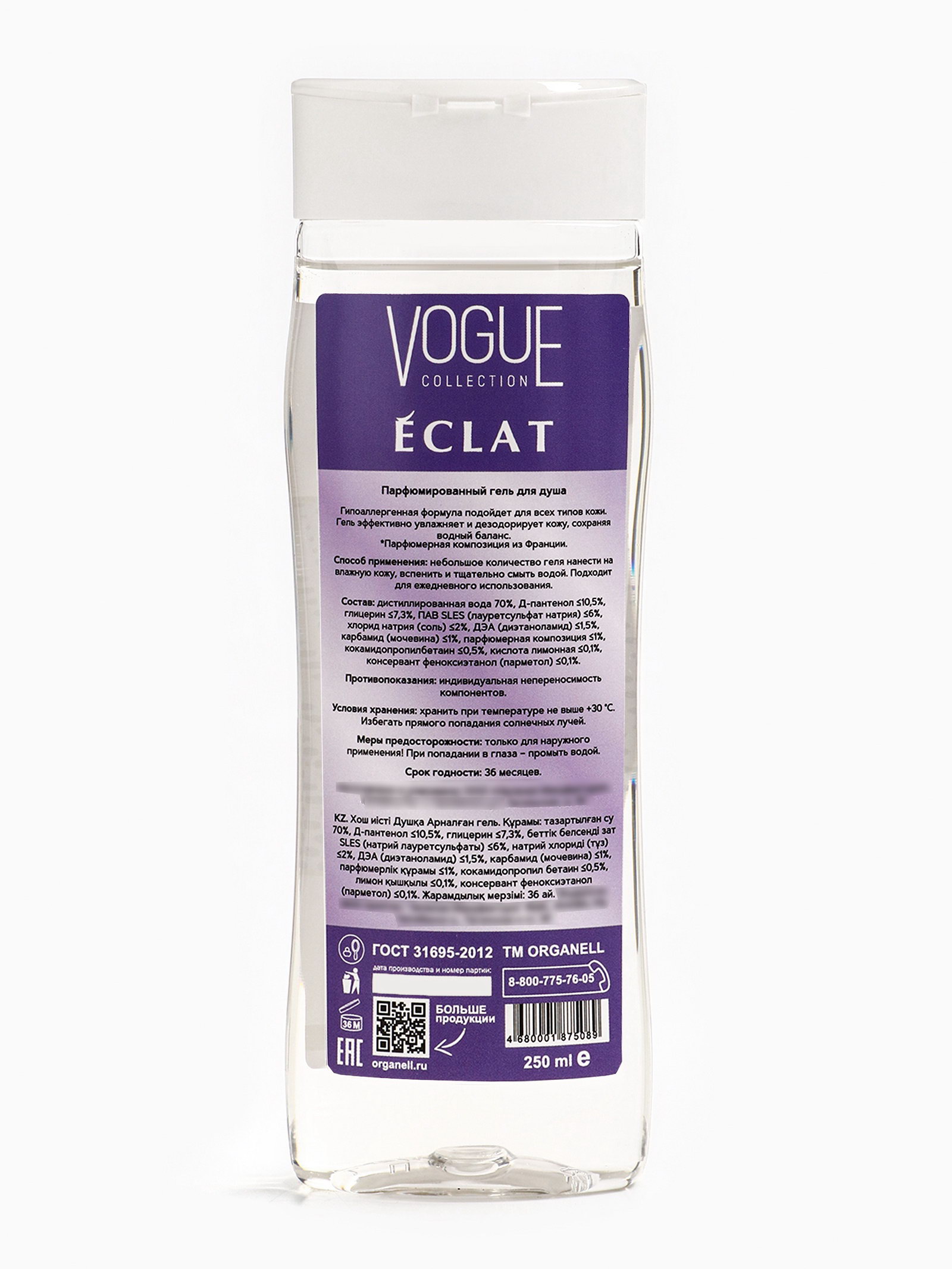 Гель для душа женский парфюмированный сирень, лимон, мускус, османтус, 250 мл, 250 мл., ORGANELL, Россия