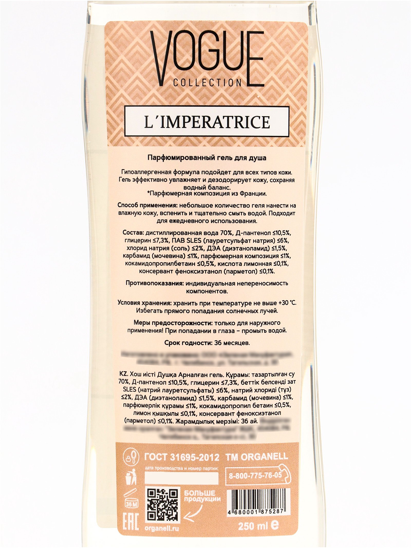 Гель для душа женский парфюмированный перец, киви, арбуз, мускус, 250 мл, 250 мл., ORGANELL, Россия