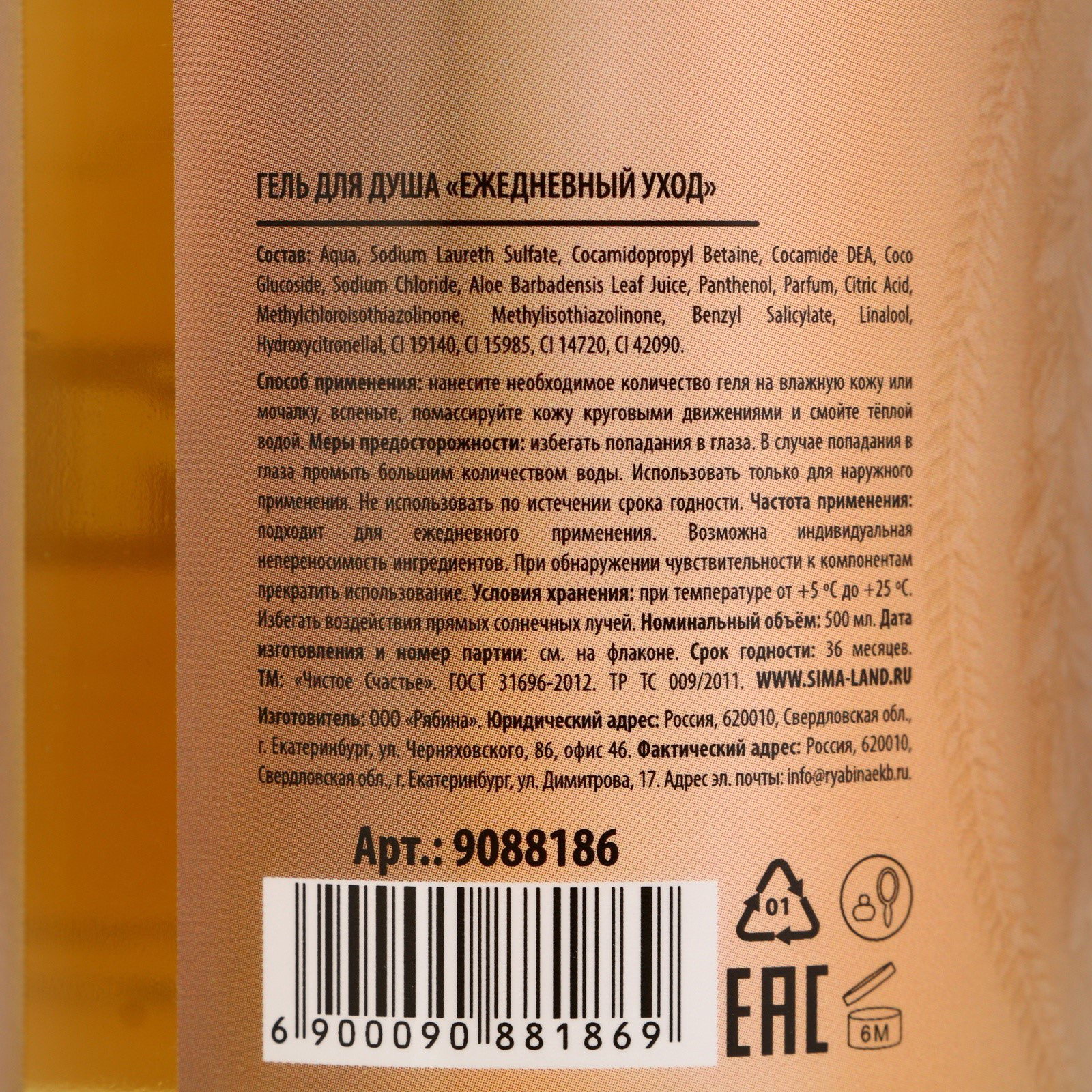 Гель для душа шампанское "Мечтай!", 500 мл, аромат цветочного сада, 500 мл., Чистое счастье, Россия