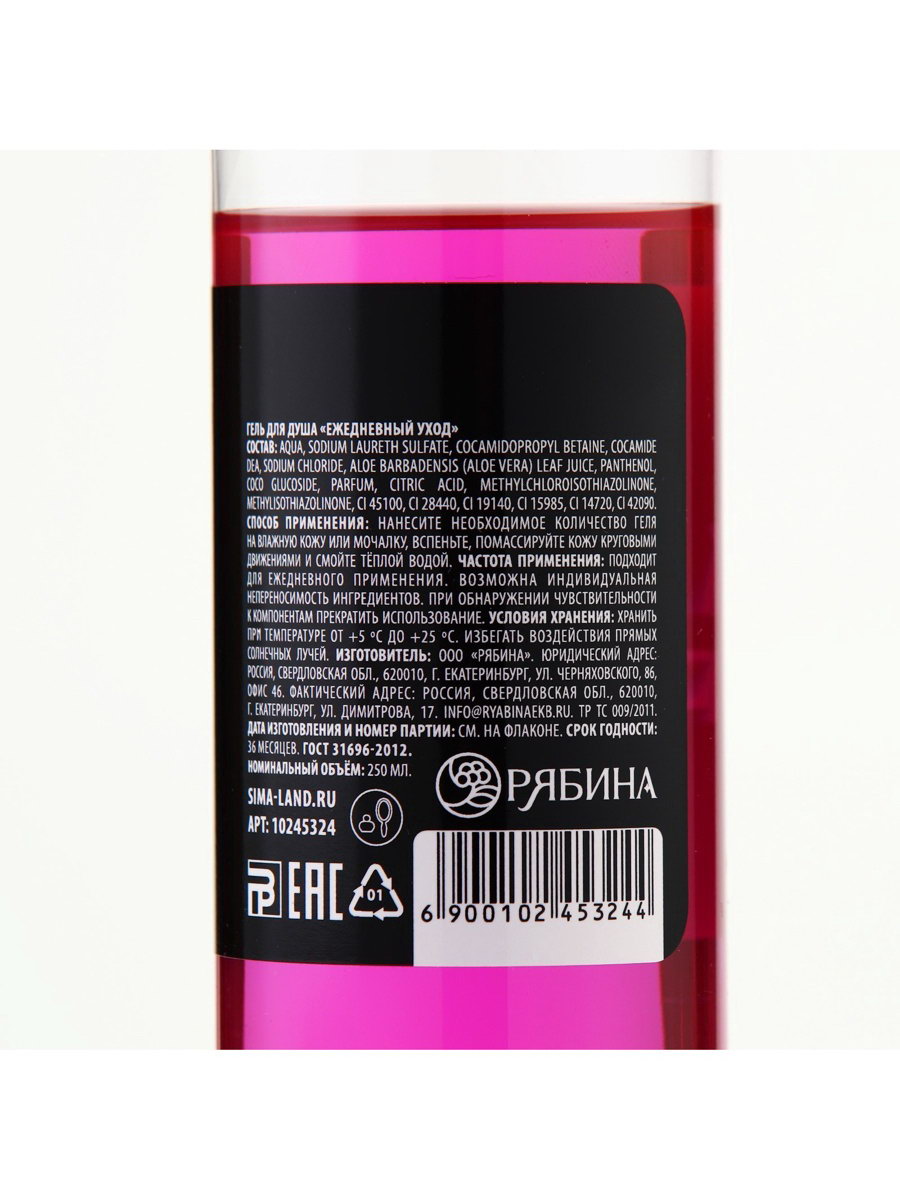Область применения: Для тела, Для тела Вид: Гель, Гель для душа Размер упаковки: 4.5 x 19.5 x 4.5 см. Форма выпуска: Флакон с дозатором Аромат: Вишня Темпер. ограничение НЕ ВЫШЕ ℃: +25 Набор: Нет Вид упаковки: Без упаковки Назначение: Очищение, детокс Возраст: Для взрослых Тематика подарка: Уходовая косметика Темпер. ограничение НЕ НИЖЕ ℃: +5 Тематика праздника: Универсальная тематика Адресат: Без адресата Для кого: Унисекс tnved: 3401300000 tnved: 3401300000 Состав: Aqua, Sodium Laureth Sulfate, Cocamidopropyl Betaine, Cocamide DEA, Sodium Chloride, Aloe Barbadensis (Aloe Vera) Leaf Juice, Pantenol, Coco Glucoside, Parfum, Citric Acid, Methylchloroisothlazolinone, Methylisothiazolinone, CI 45100, CI 28440, CI 15985, CI 14720, CI 42090 | ||