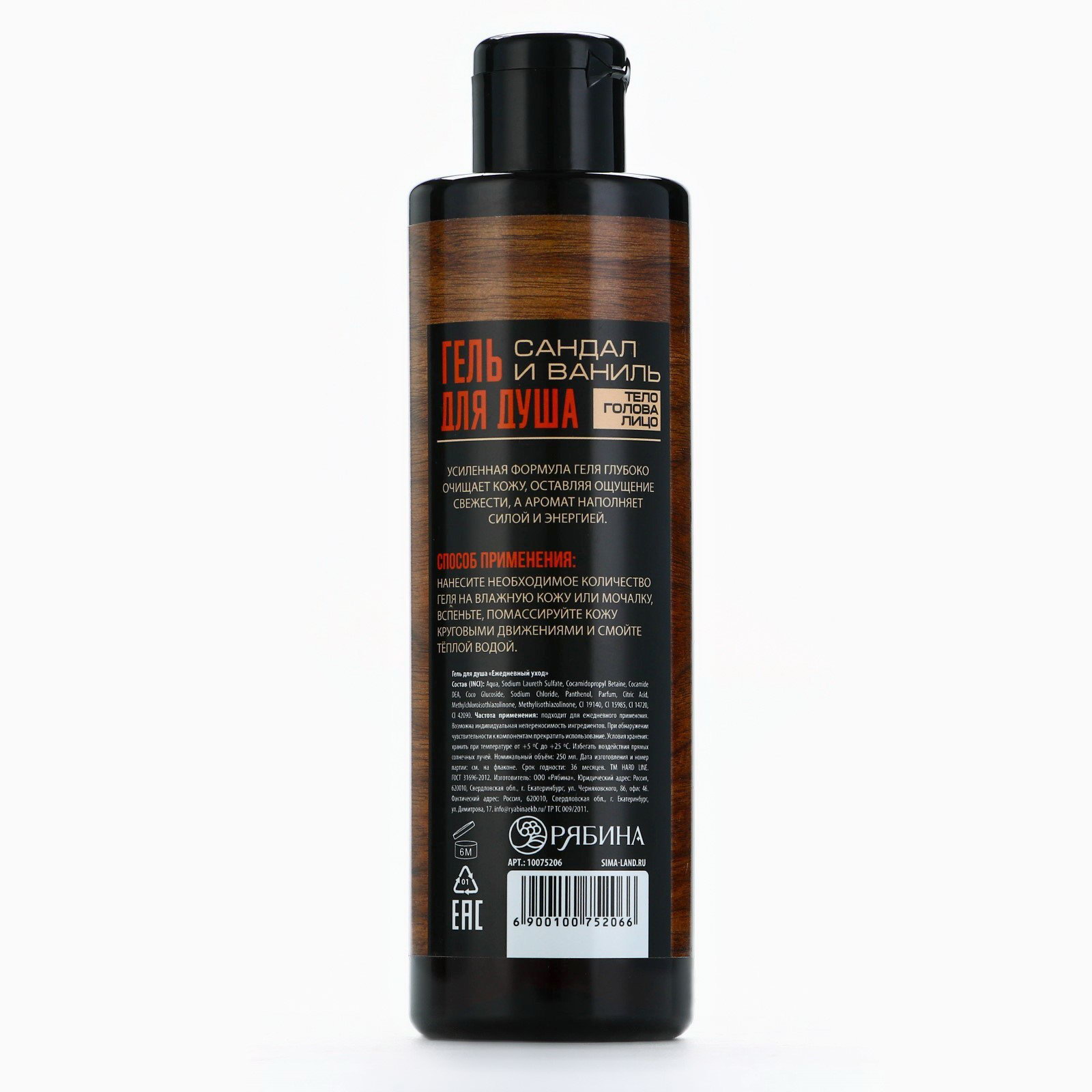 Аромат: Ваниль, Сандал Область применения: Для тела, Для тела Размер упаковки: 5 x 17.5 x 5 см. Форма выпуска: Флакон без дозатора Темпер. ограничение НЕ НИЖЕ ℃: +5 Темпер. ограничение НЕ ВЫШЕ ℃: +25 Для кого: Для мужчины Вид упаковки: Без упаковки Назначение: Очищение, детокс Возраст: Для взрослых Вид: Гель Набор: Нет Тематика подарка: Уходовая косметика Символ года: Нет Адресат: Без адресата Тематика праздника: Универсальная тематика Цвет: Коричневый Цвет: Коричневый tnved: 3401300000 | ||