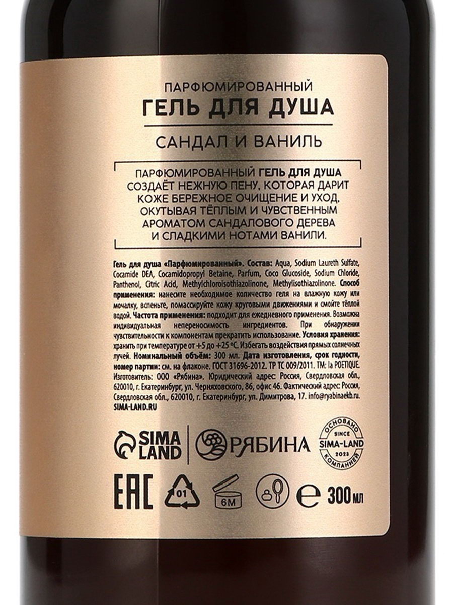 Гель для душа женский, 300 мл, аромат сандала и ванили, LA POETIQUE, 300 мл., laPOETIQUE, Россия