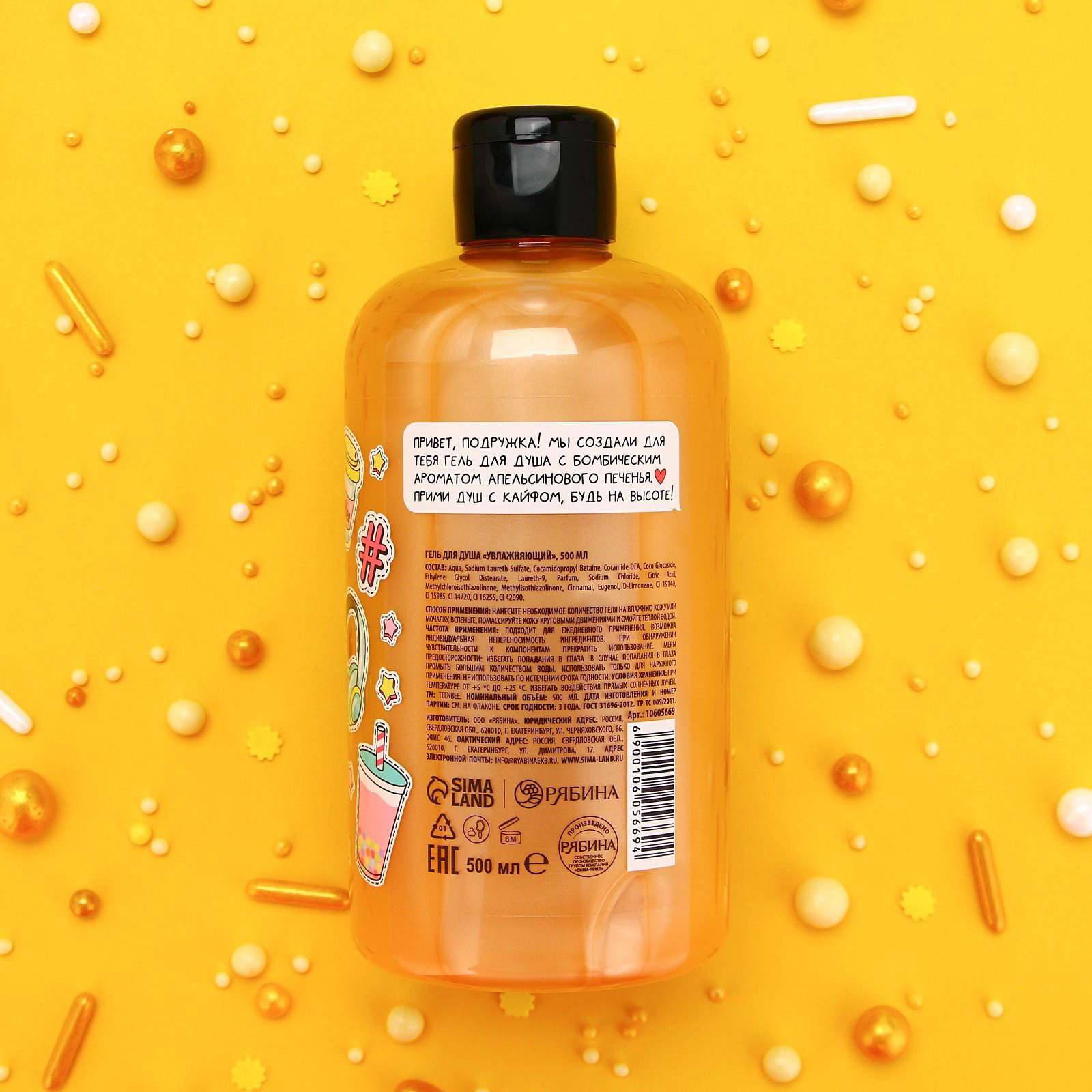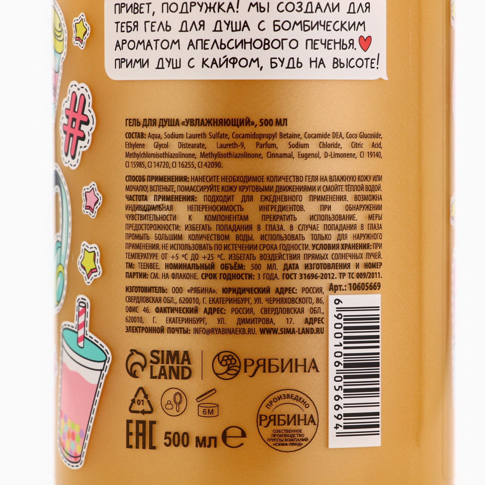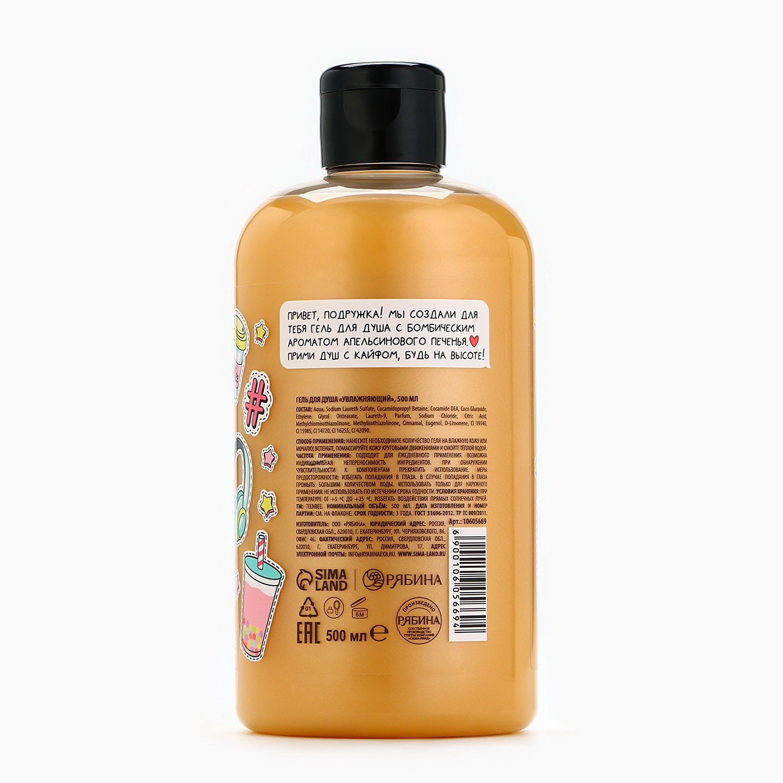 Гель для душа женский, 500 мл, аромат апельсинового печенья, 500 мл., TeenBee, Россия