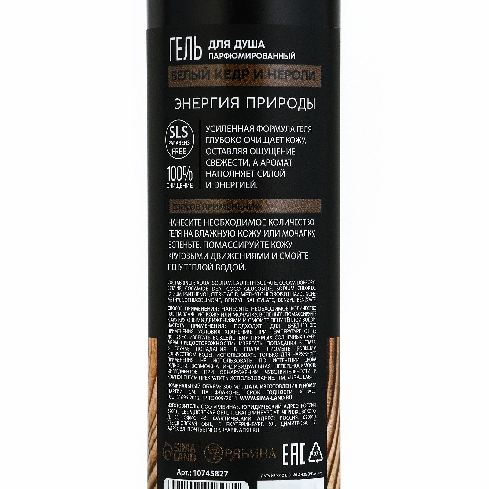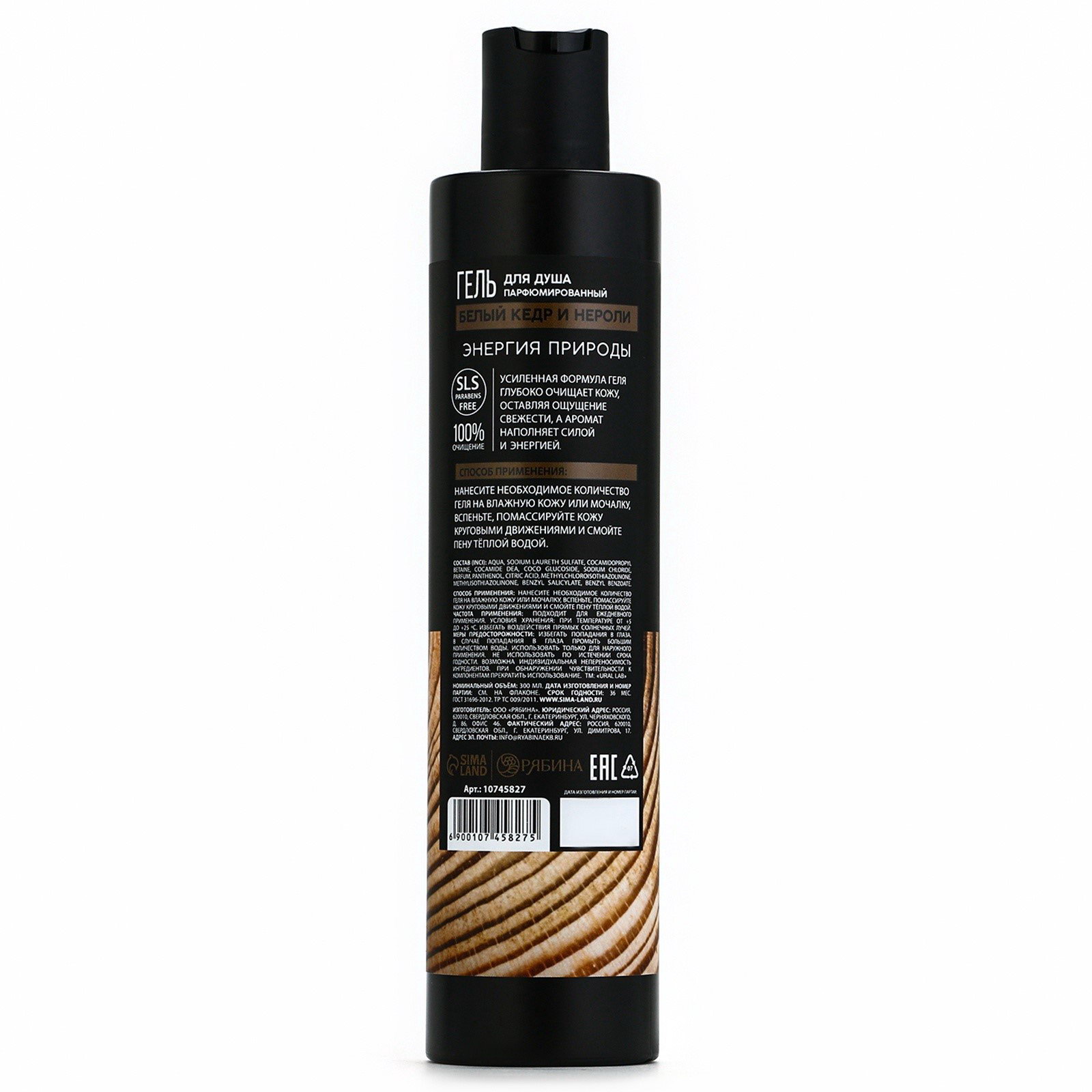 Гель для душа мужской, 300 мл, аромат белого кедра и нероли, 300 мл., URAL LAB, Россия