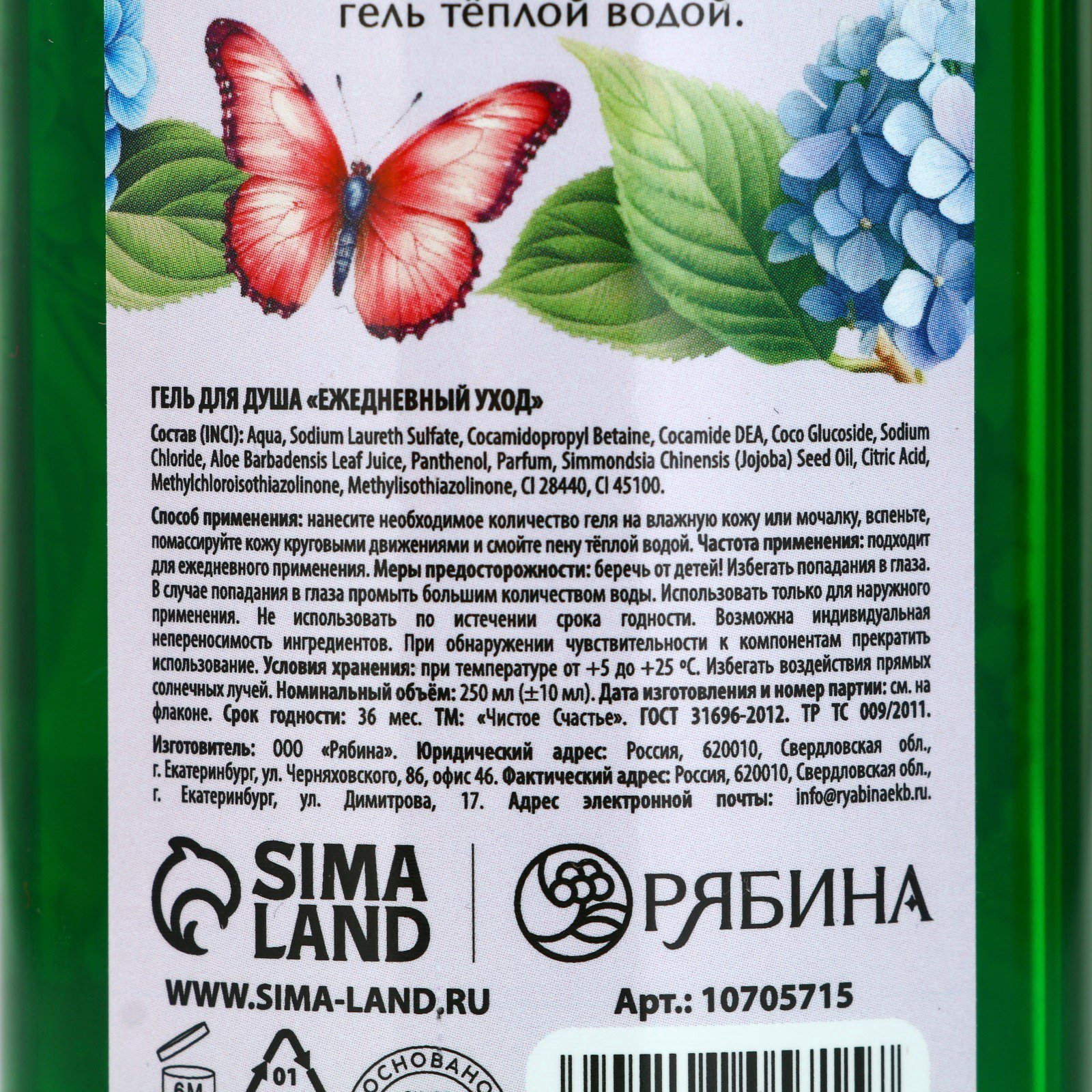 Гель для душа "Цвети от счастья", 250 мл, аромат цветочного букета, 250 мл., Чистое счастье, Россия