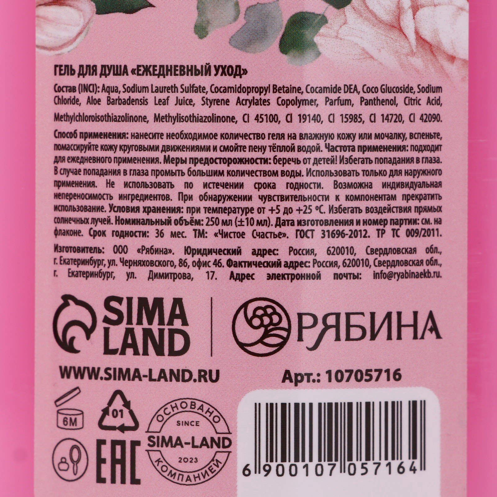 Гель для душа "Самой нежной", 250 мл, аромат воздушного шоколада, 250 мл., Чистое счастье, Россия