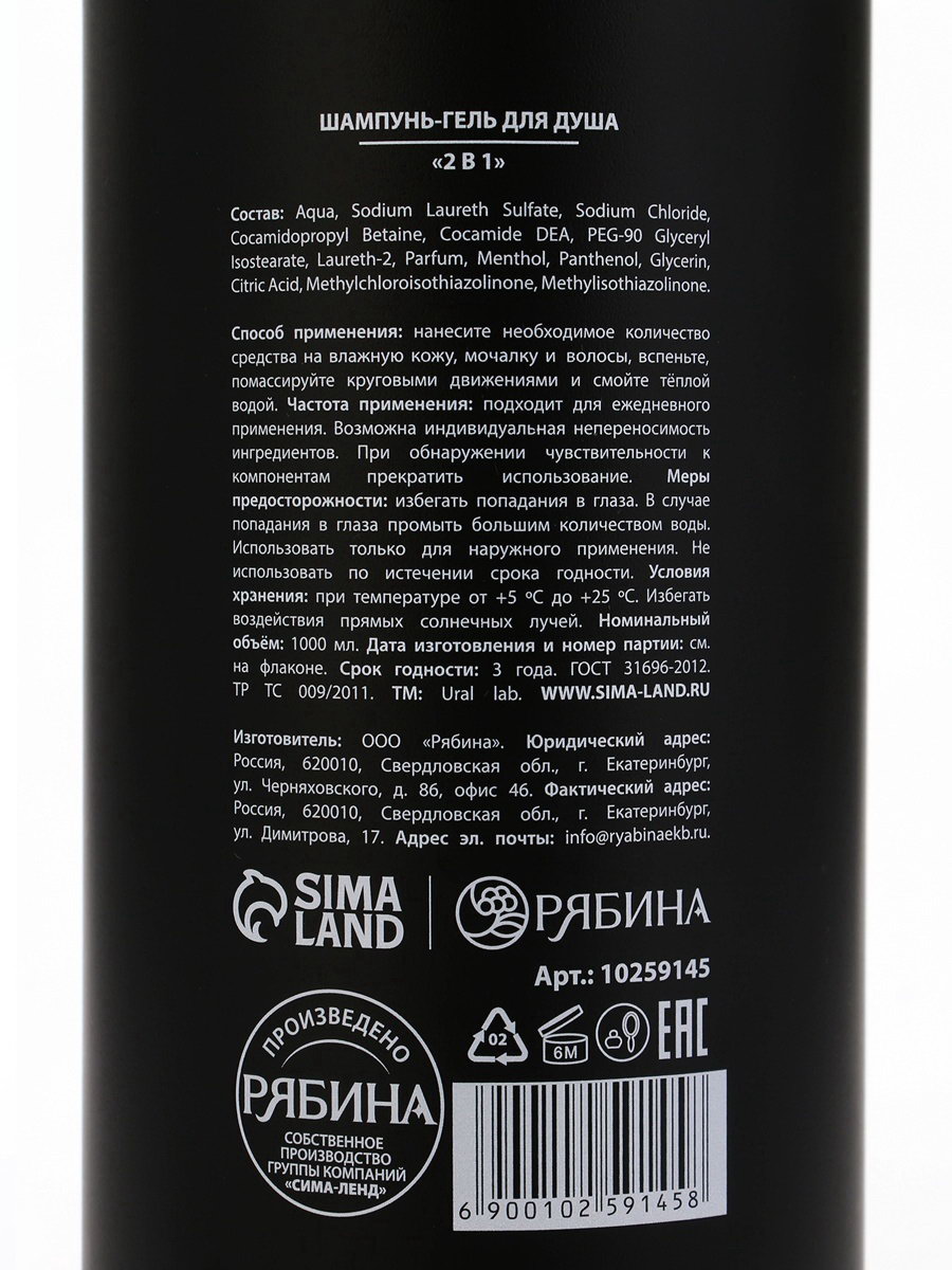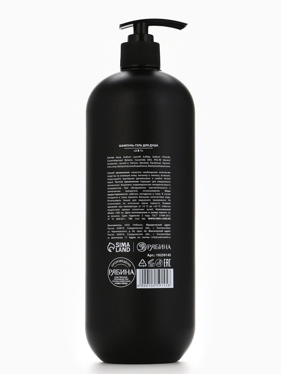 Гель для душа и шампунь мужской 2 в 1, 1000 мл, ULAB, 1000 мл., URAL LAB, Россия