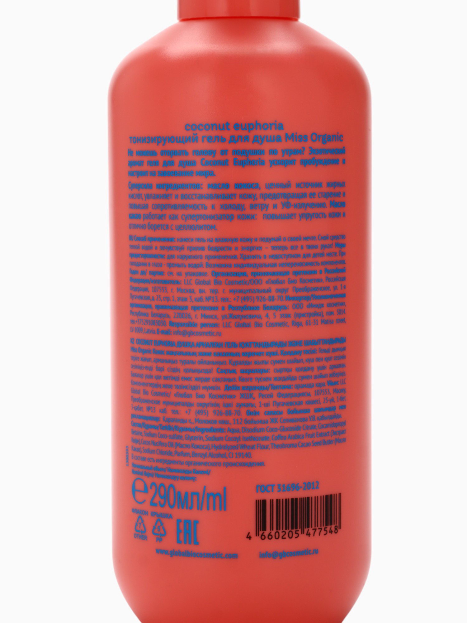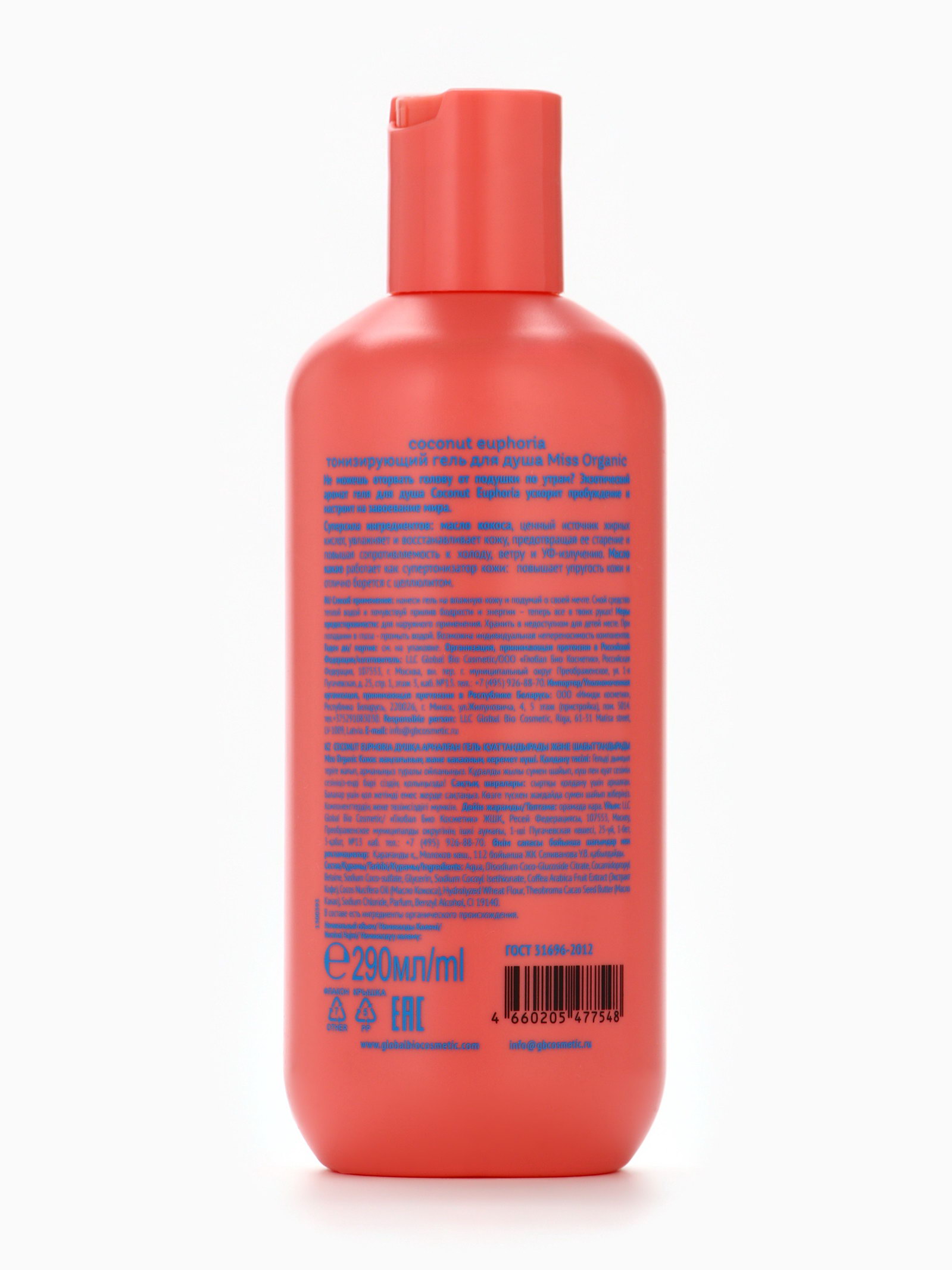Гель для душа тонизирующий Coconut euphoria, 290 мл, 290 мл., Miss Organic, Россия