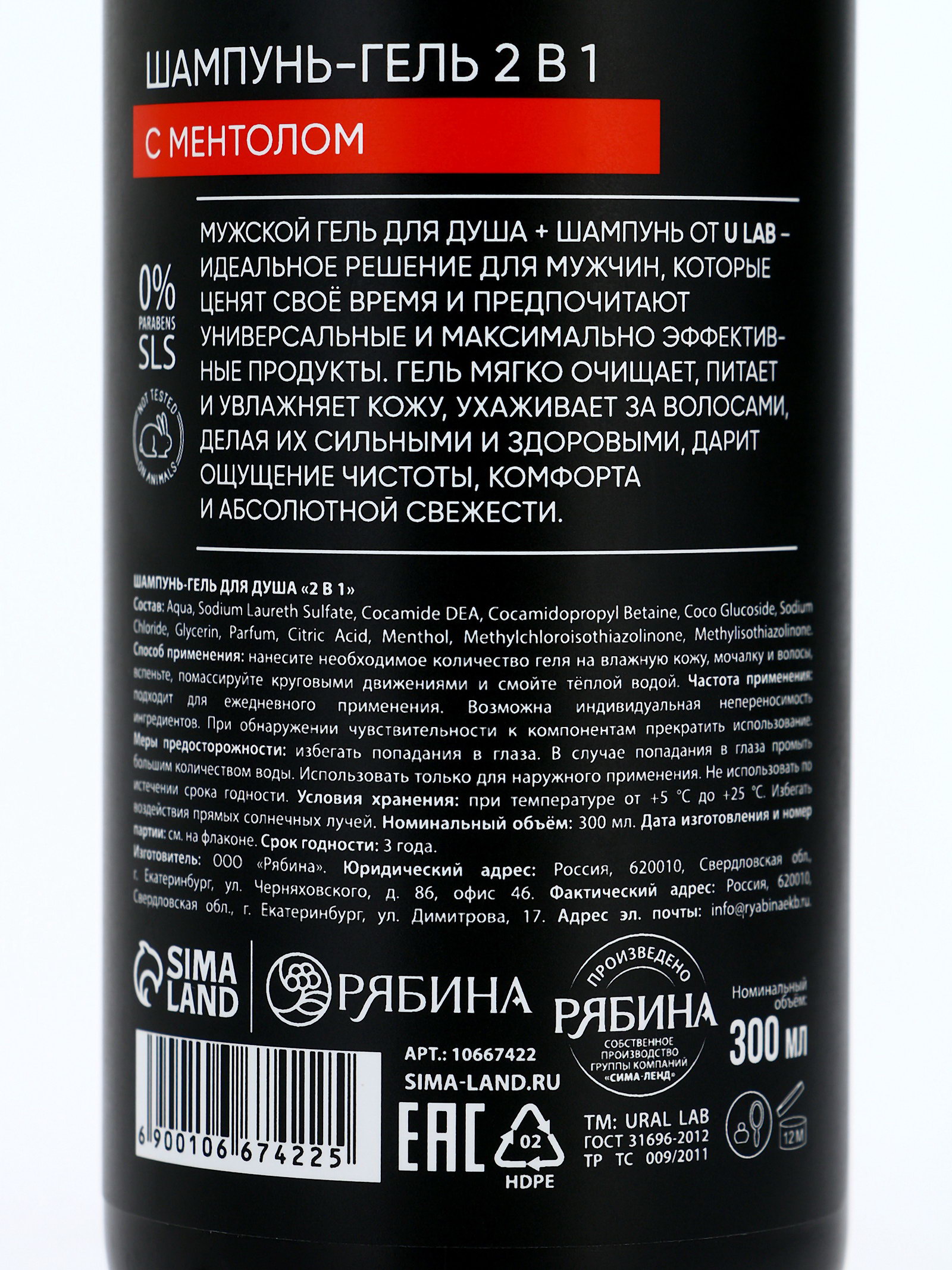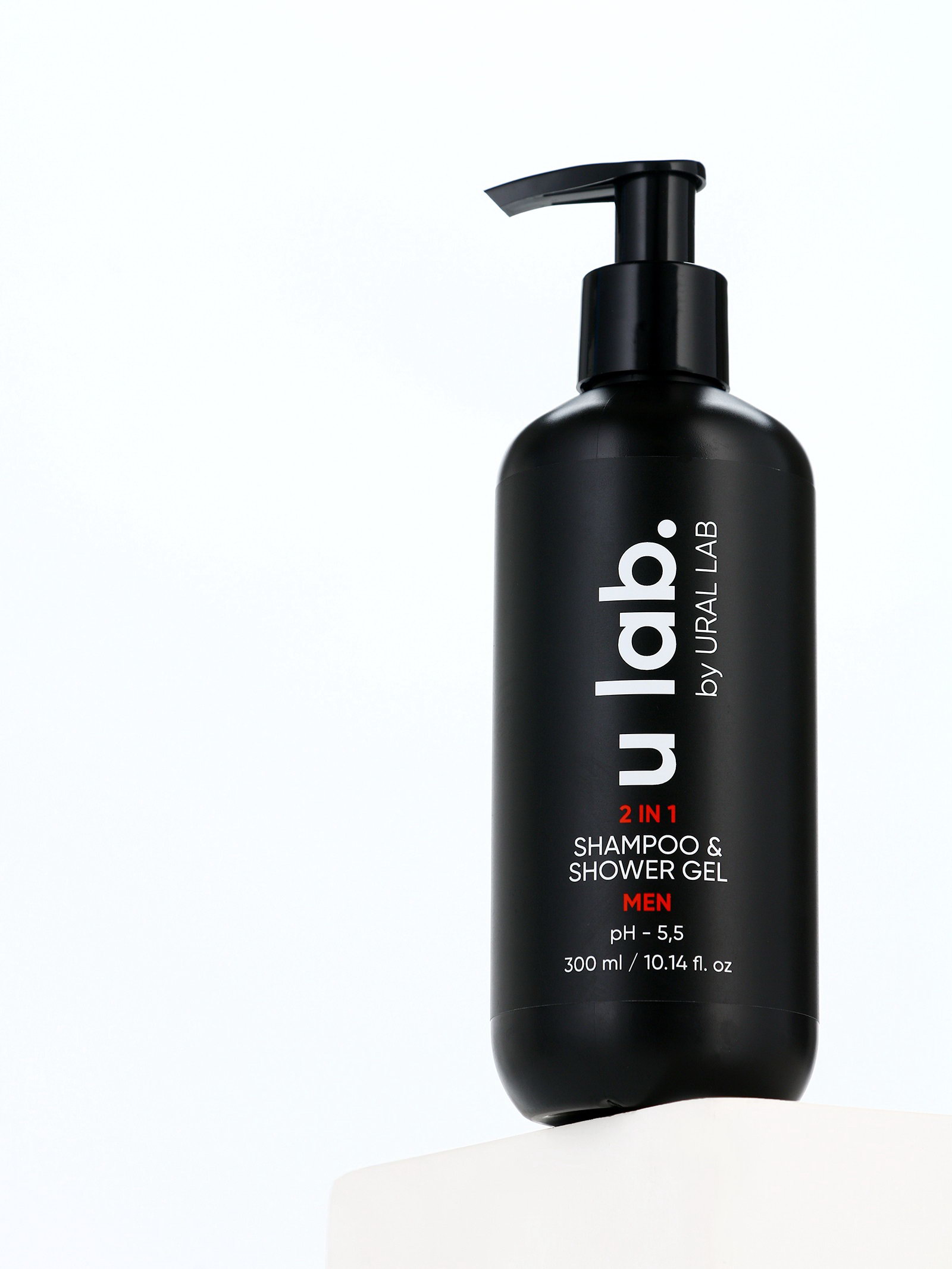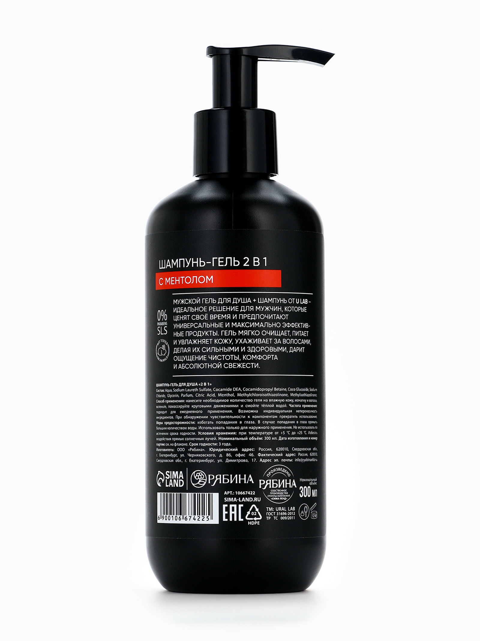 Гель для душа и шампунь мужской 2 в 1, 300 мл, с ментолом, 300 мл, ULAB, 300 мл., URAL LAB, Россия