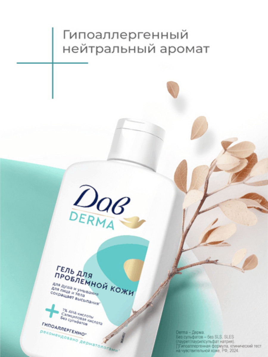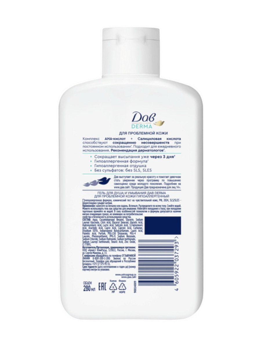 Гель для душа и умывания для проблемной кожи, 280 мл, 280 мл., Дав, Россия