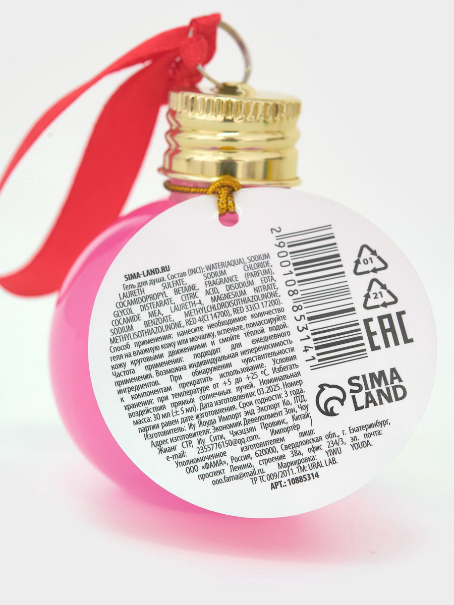 Гель для душа в форме ёлочного шара, 30 мл, аромат ванильный десерт, 4x4x4.5 см., URAL LAB, Китай
