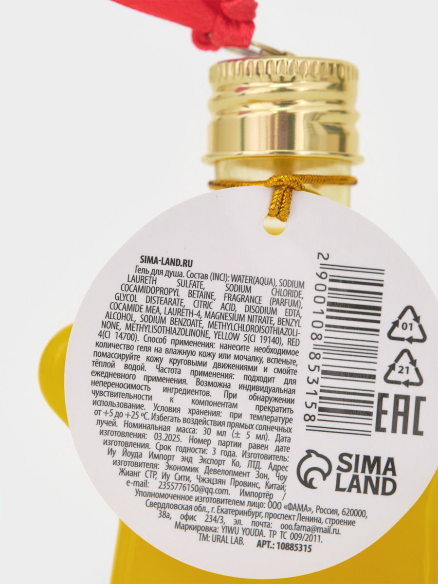 Гель для душа в форме звезды, 30 мл, аромат имбирное печенье, 2x4x5 см., URAL LAB, Китай