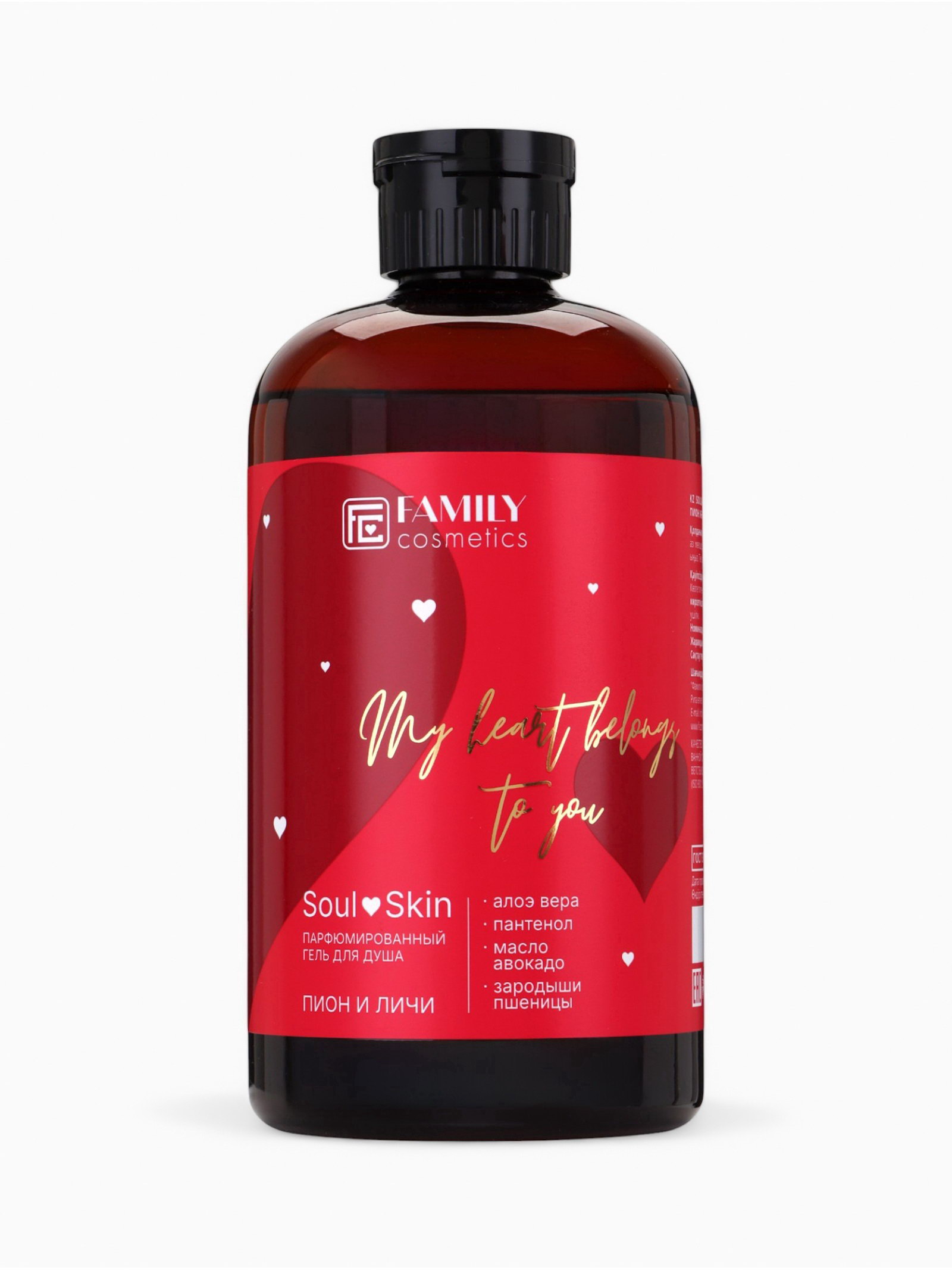 Гель для душа парфюмированный Soul&Skin пион и личи, 470 мл, 470 мл., Family Cosmetics, Россия