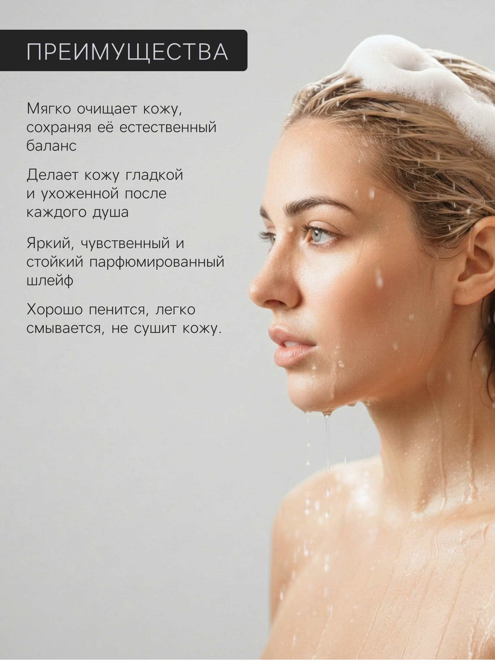 Аромат: Амбра, Ваниль Для кого: Для женщины, Для мужчины, Унисекс Размер упаковки: 7 x 7 x 16 см. tnved: 3401300000 tnved: 3401300000 Температурное ограничение: Нет Форма выпуска: Флакон без дозатора Набор: Нет Возраст: Для взрослых Область применения: Для тела Вид: Гель Средство для бережного очищения кожи с притягательным ароматом амбры и ванили, обеспечивающее увлажнение, питание и восстановление кожи. Эффекты: