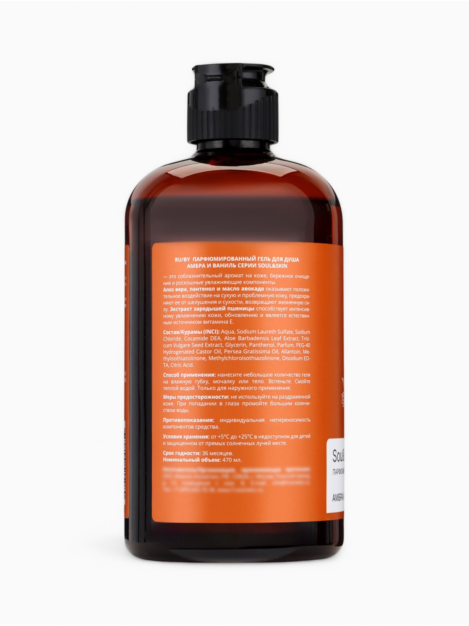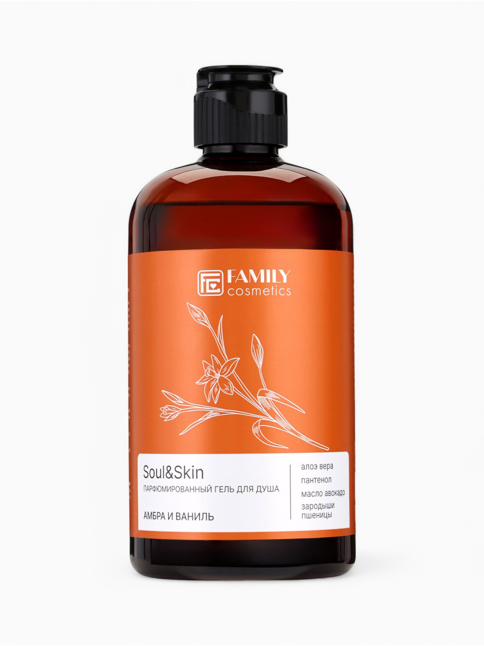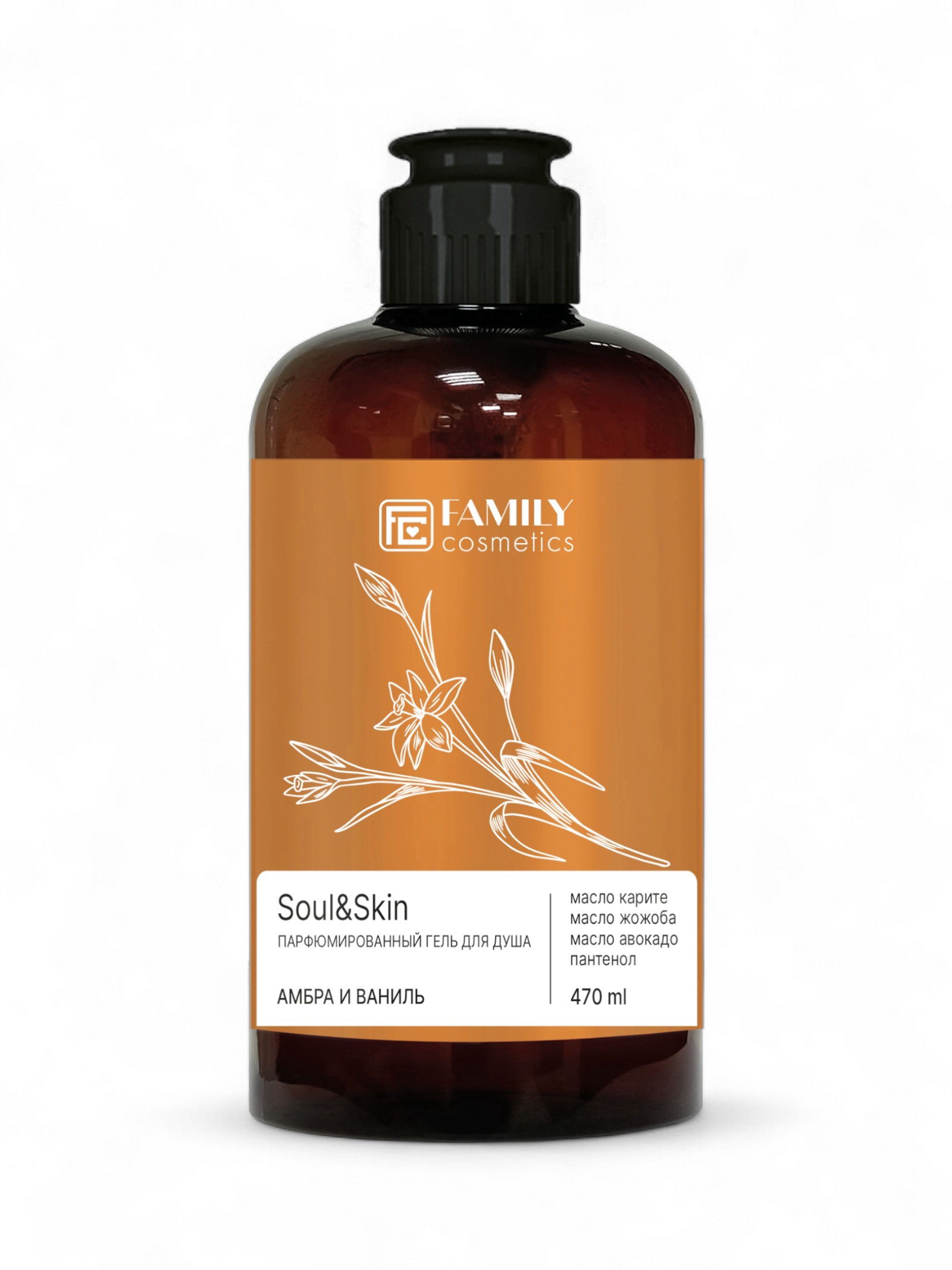 Гель для душа парфюмированный Soul&Skin амбра и ваниль, 470 мл, 470 мл., Family Cosmetics, Россия