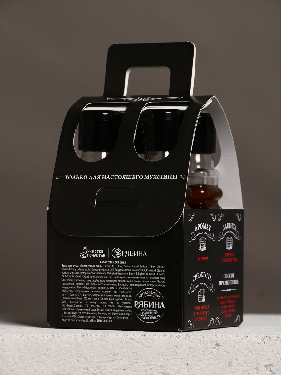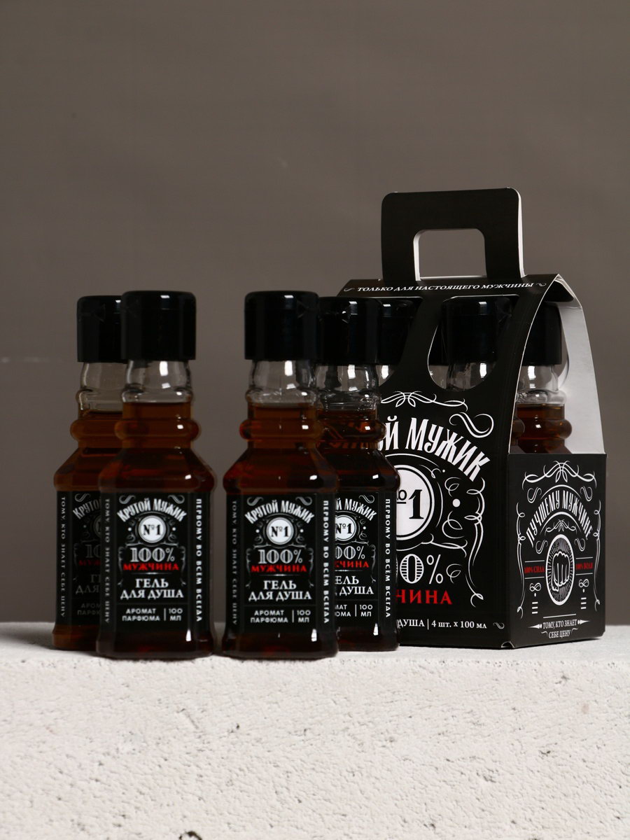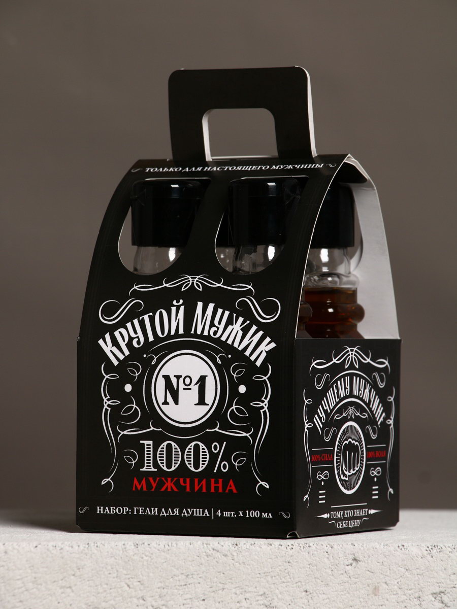 Гель для душа "Крутой мужик", набор 4 шт. x 100 мл, 100 мл., Чистое счастье, Россия