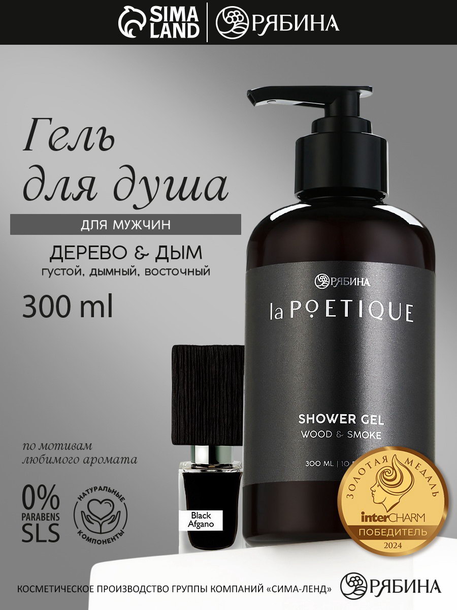 Гель для душа парфюмированный мужской, аромат дерево и дым, 300 мл, 300 мл., laPOETIQUE, Россия