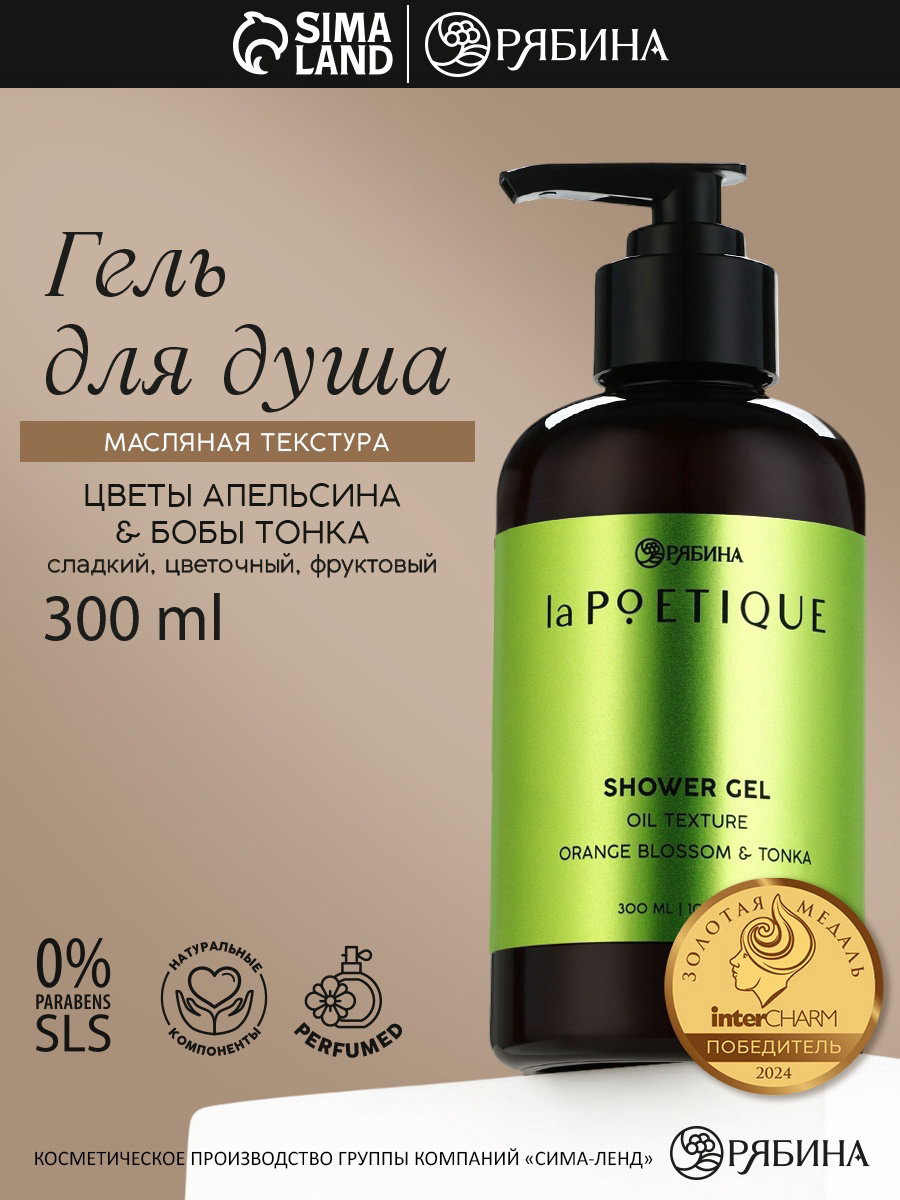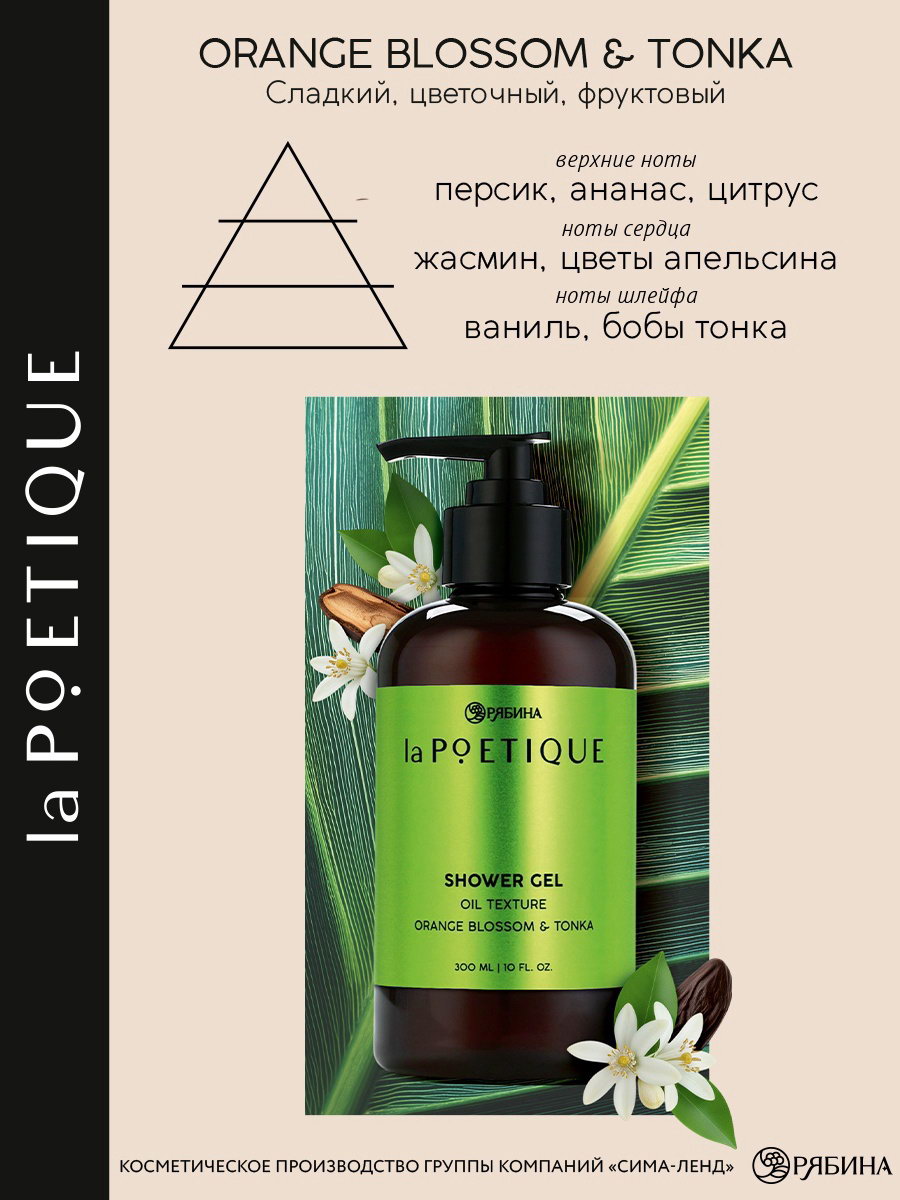 Гель для душа парфюмированный, аромат цветы апельсина и бобы тонка, 300 мл, 300 мл., laPOETIQUE, Россия