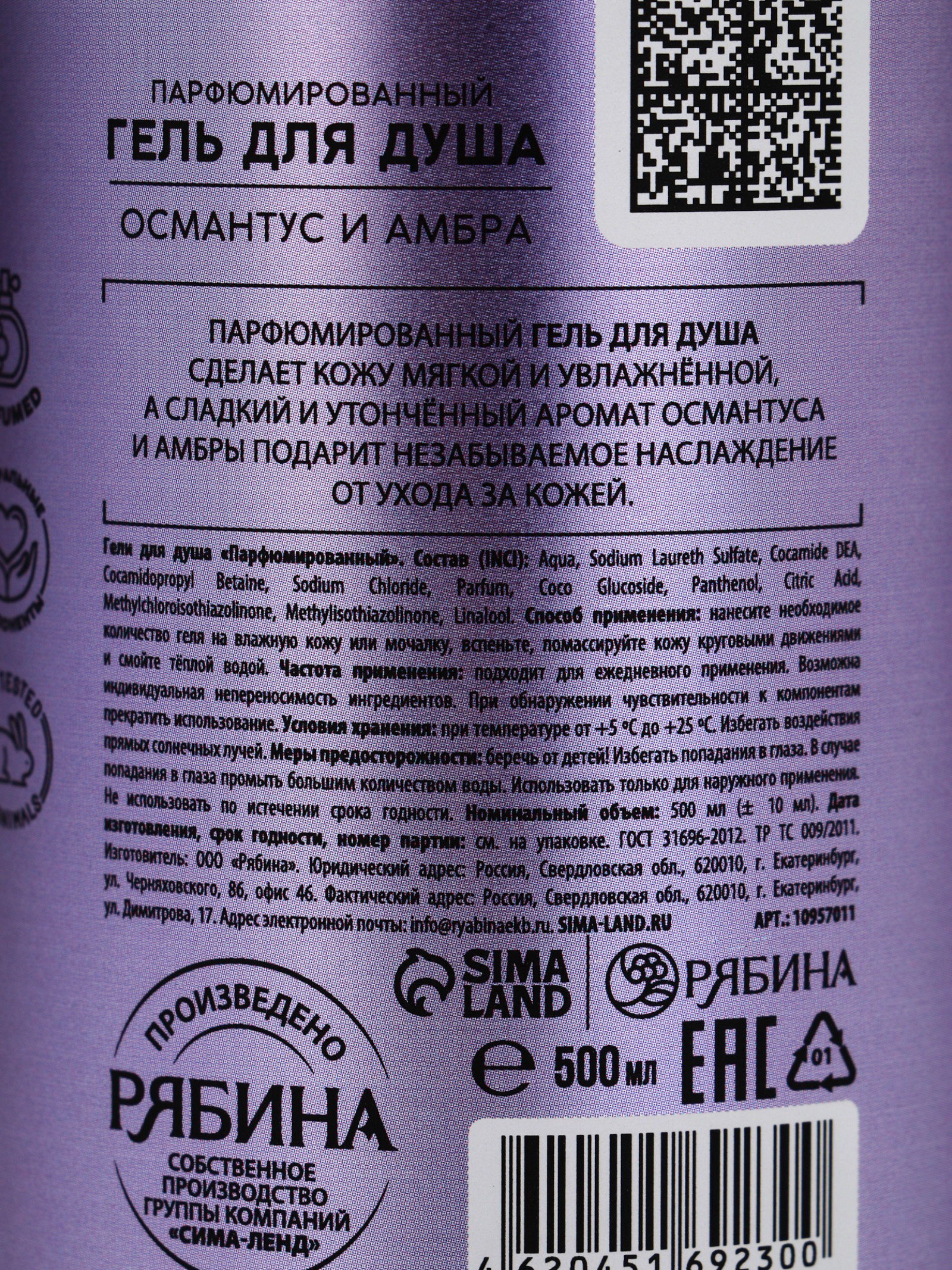 Гель для душа парфюмированный, аромат амбра и османтус, 500 мл, 500 мл., laPOETIQUE, Россия