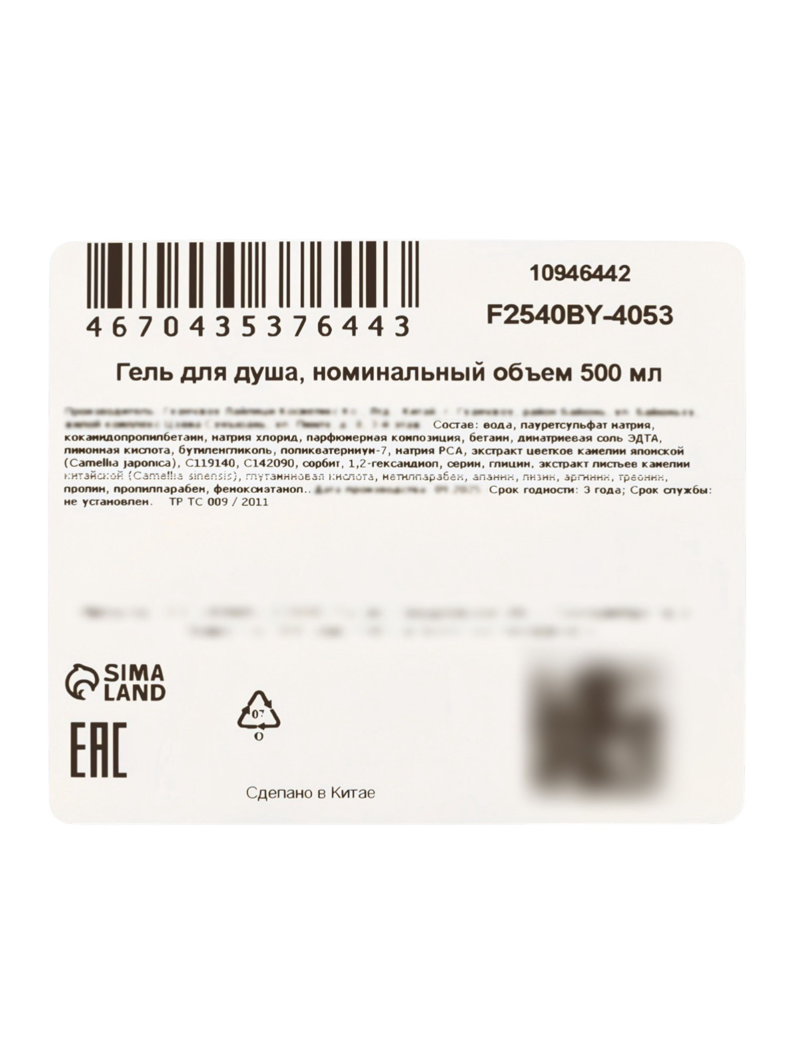 Гель для душа с ароматом камелии, 500 мл, Китай