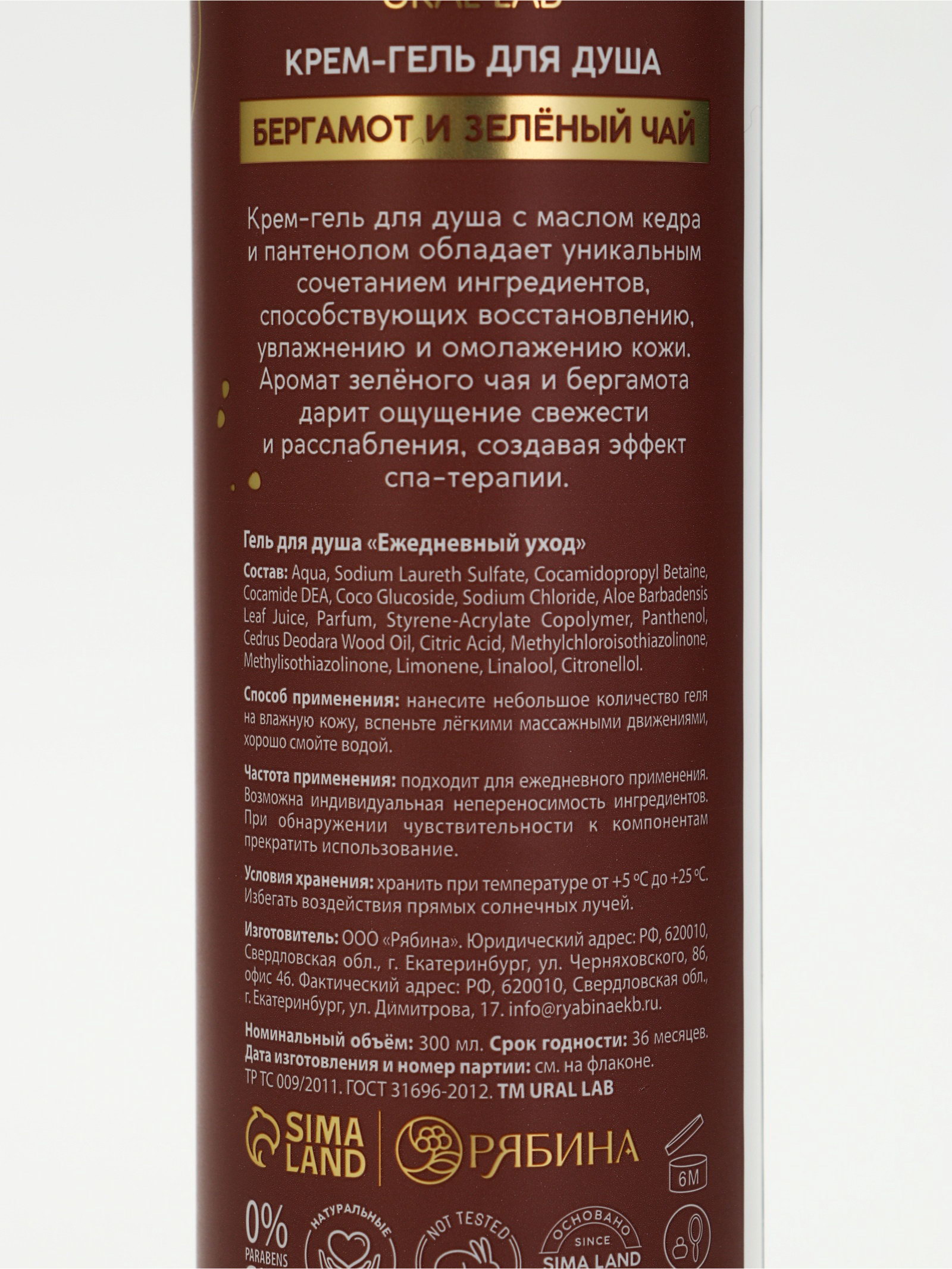 Гель для душа, аромат бергамота и зеленого чая, 300 мл, 300 мл., URAL LAB, Россия