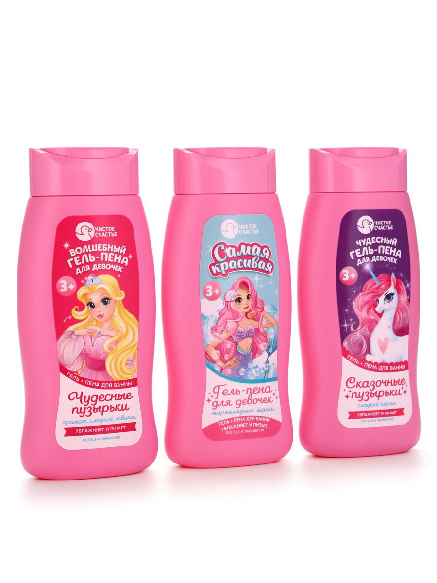 Гель-пена для девочек "Самая красивая", аромат мармеладные мишки, 250 мл, 250 мл., Чистое счастье, Россия