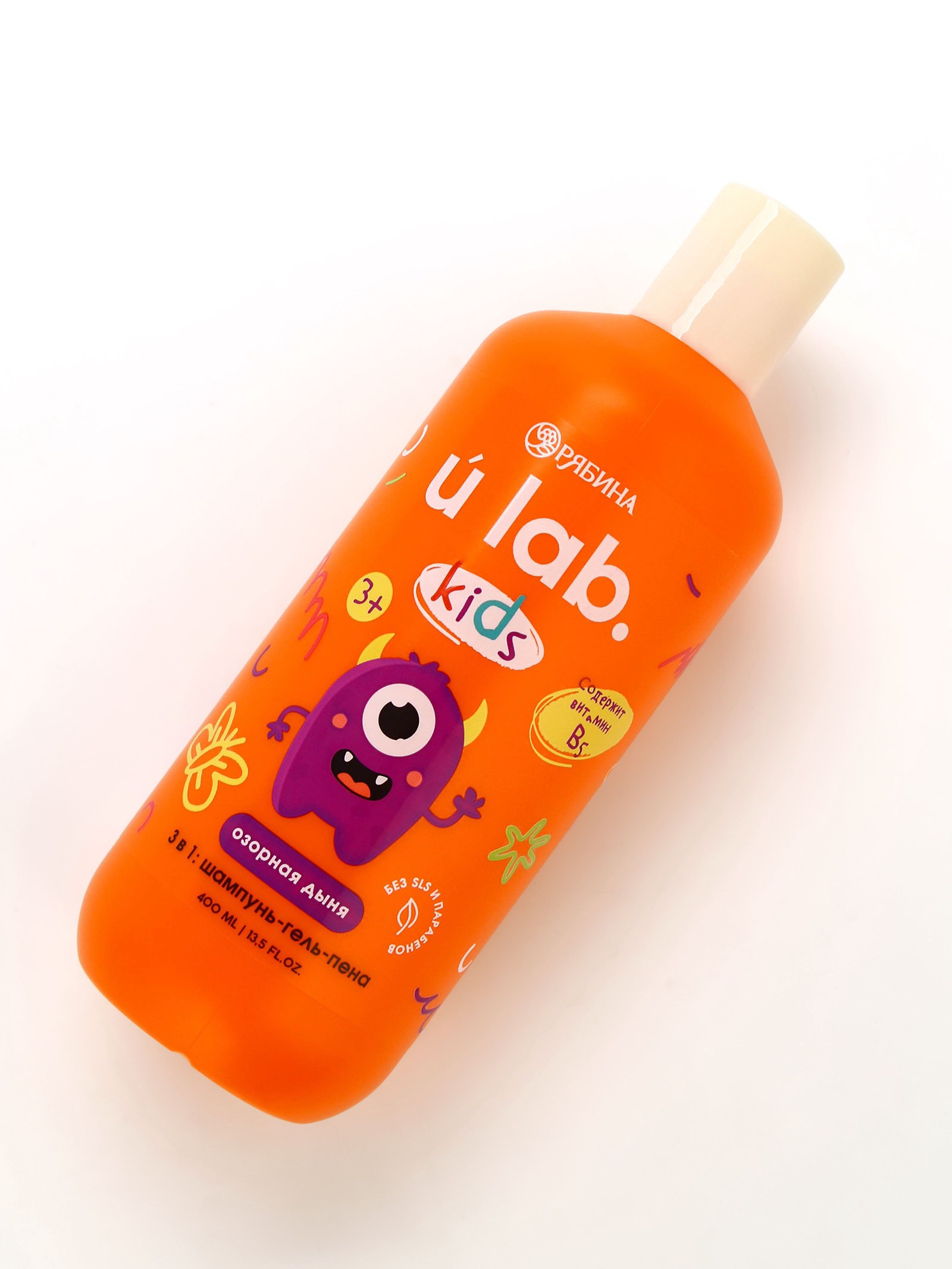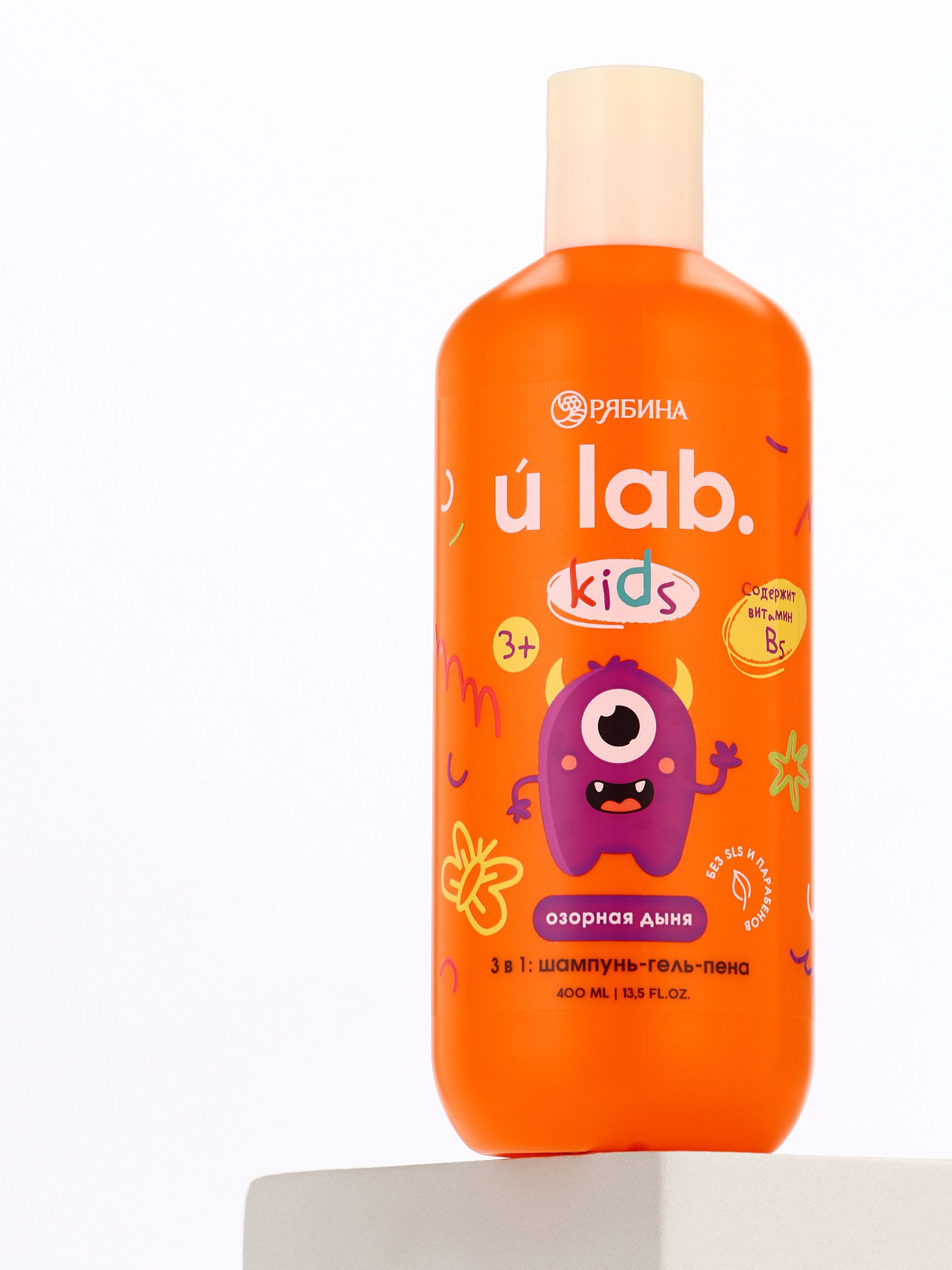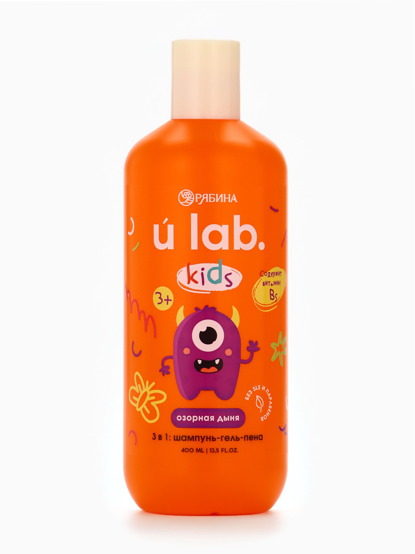 Детский шампунь-гель-пена 3в1 "Монстрики", 400 мл, аромат озорная дыня, ULAB, 400 мл., URAL LAB, Россия