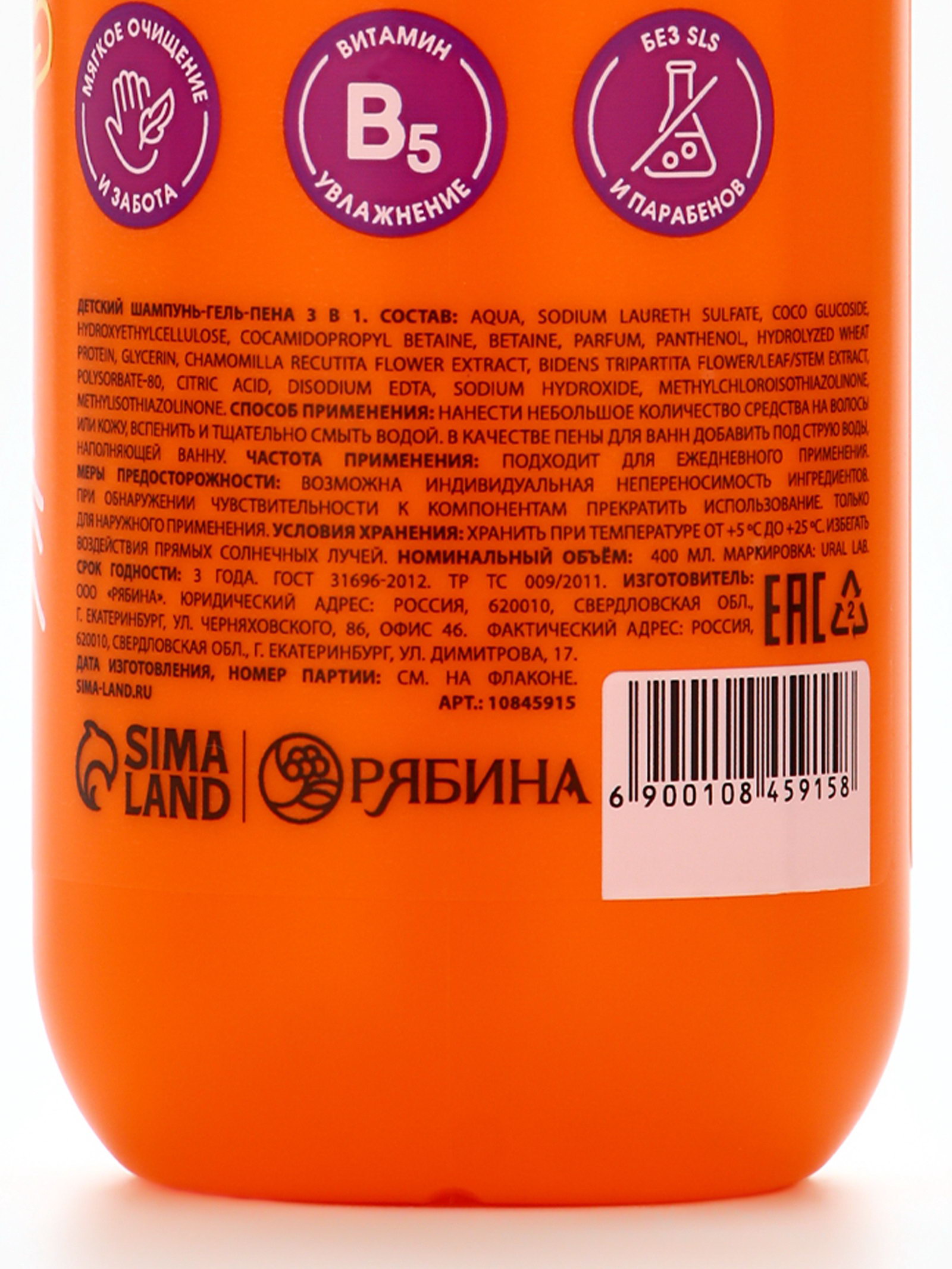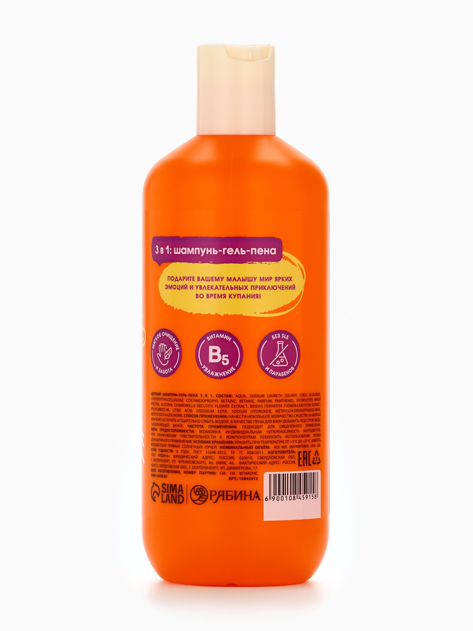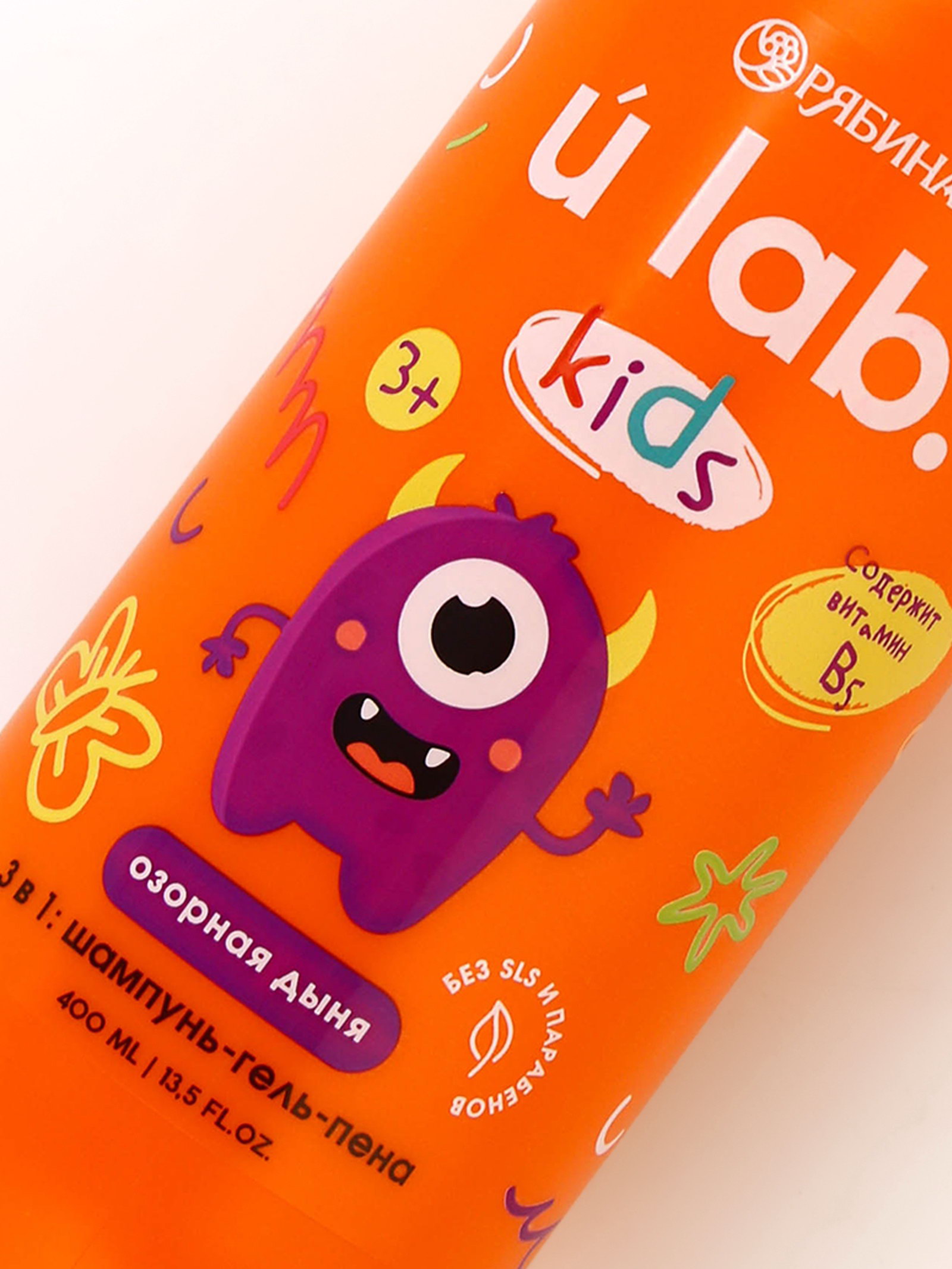 Детский шампунь-гель-пена 3в1 "Монстрики", 400 мл, аромат озорная дыня, ULAB, 400 мл., URAL LAB, Россия