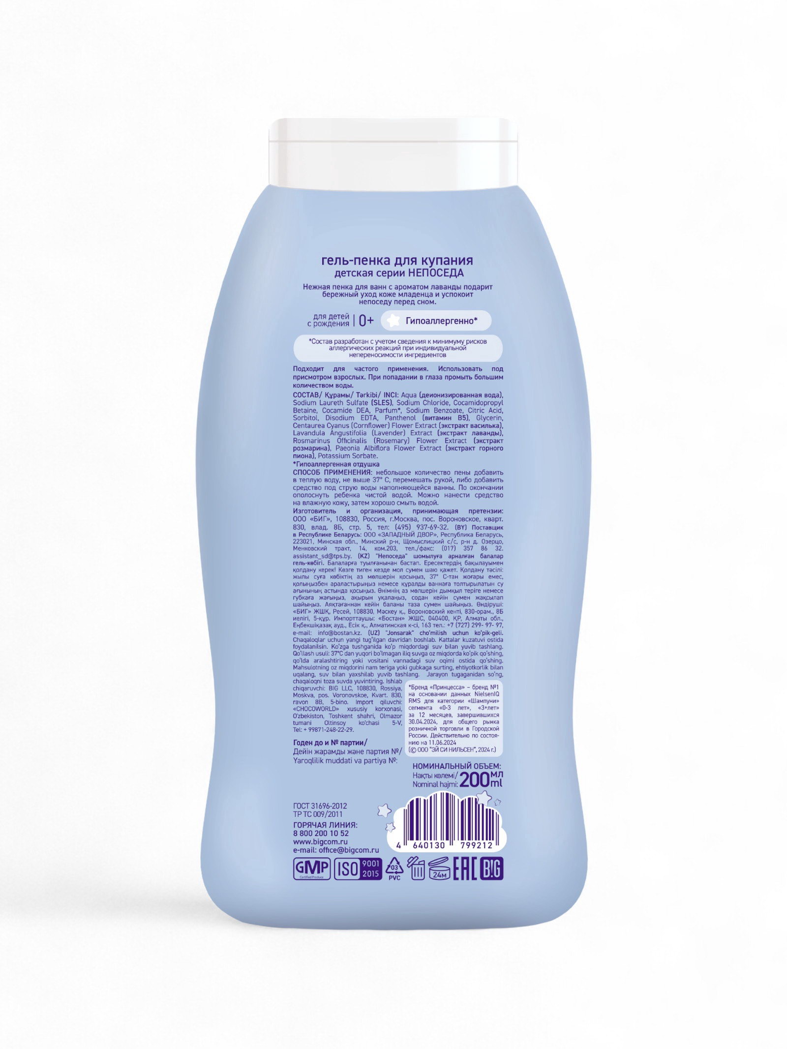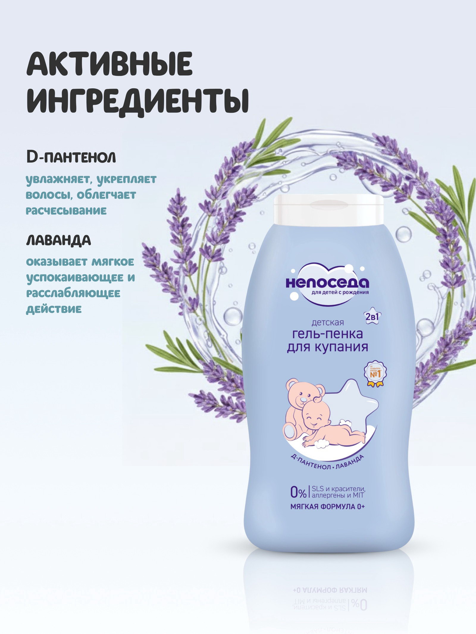 Гель-пенка для купания детская Д-пантенол, лаванда, 200 мл, 200 мл., Непоседа, Россия