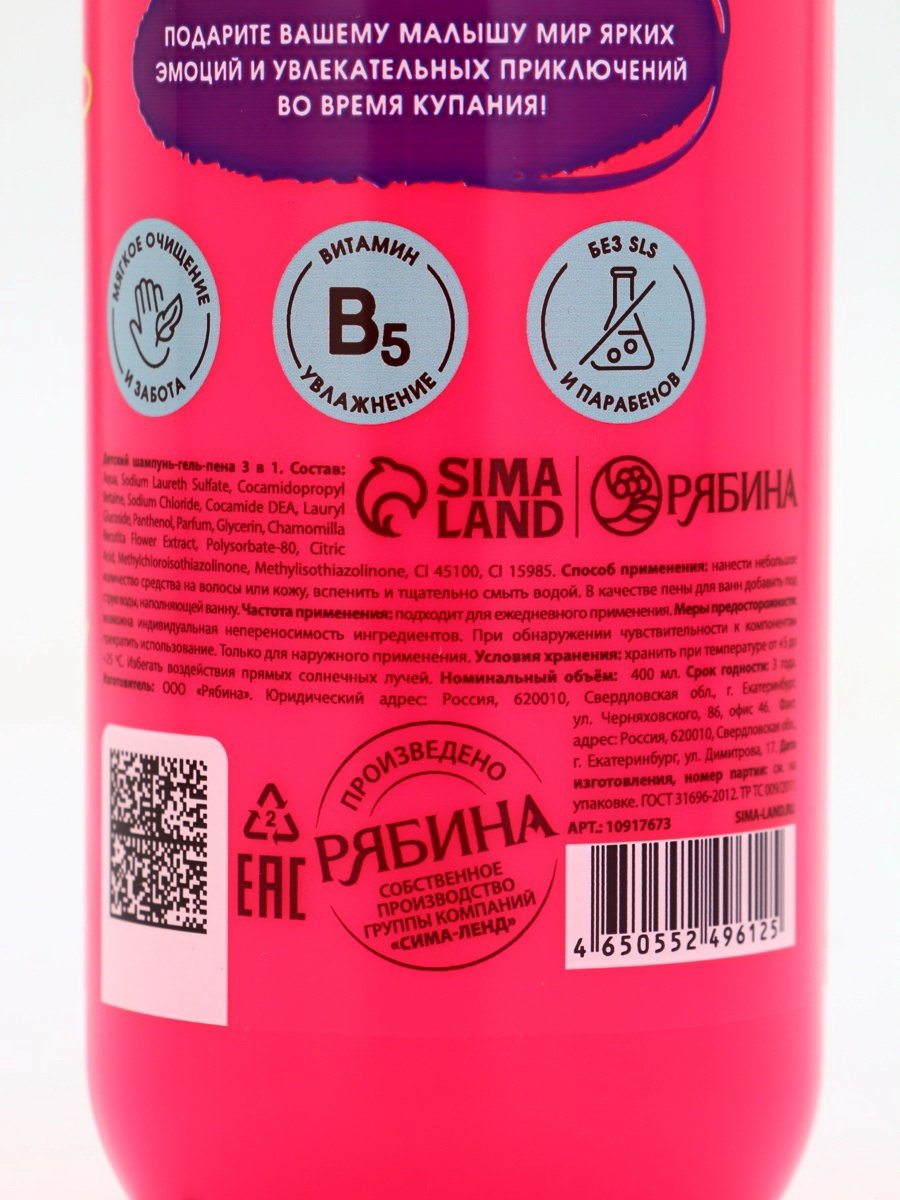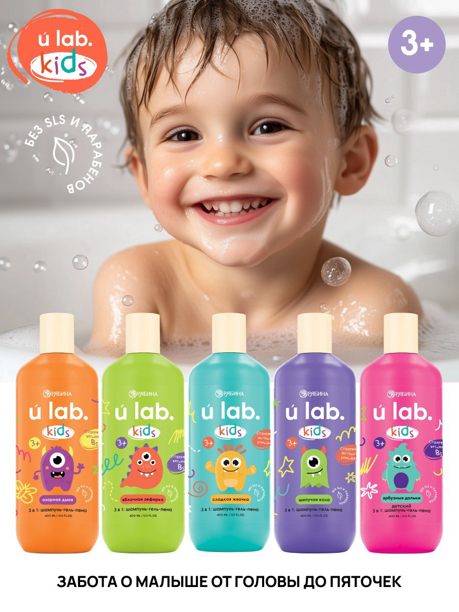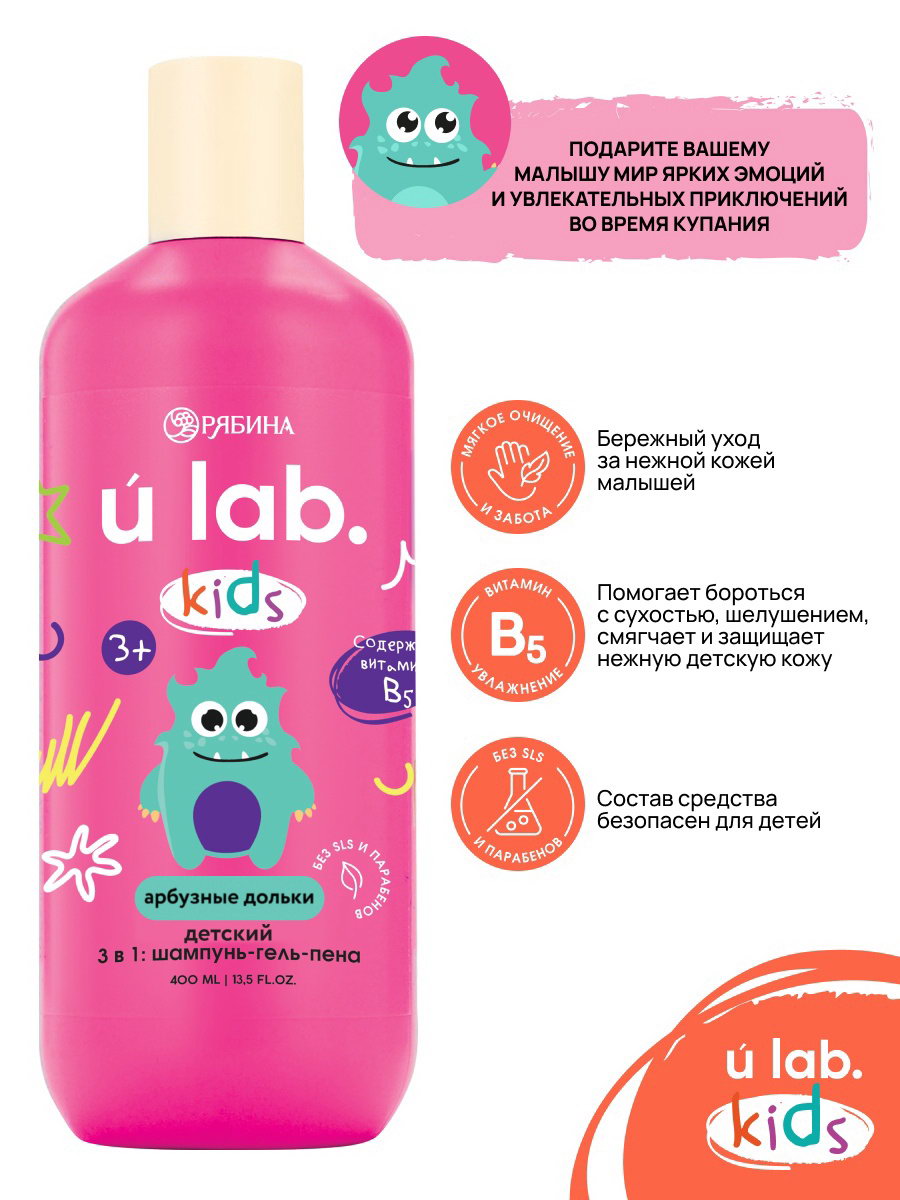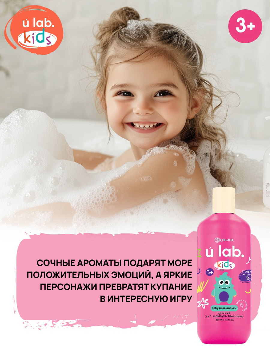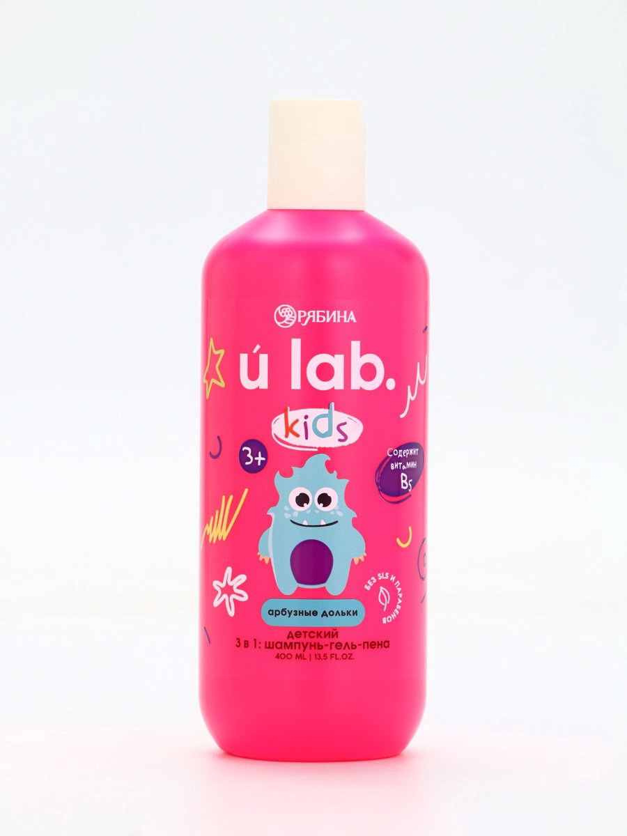 Детский шампунь-гель-пена 3в1 "Монстрики", 400 мл, аромат арбузные дольки, ULAB, 400 мл., URAL LAB, Россия