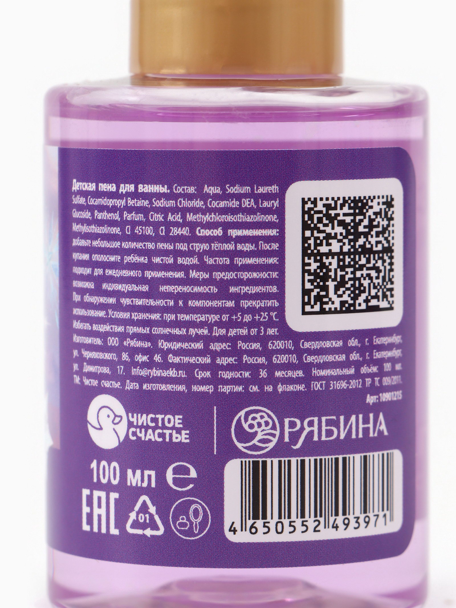 Детская пена для ванны "Лошадка", аромат фруктовый лед, 100 мл, Снежная принцесса, Чистое счастье, Россия