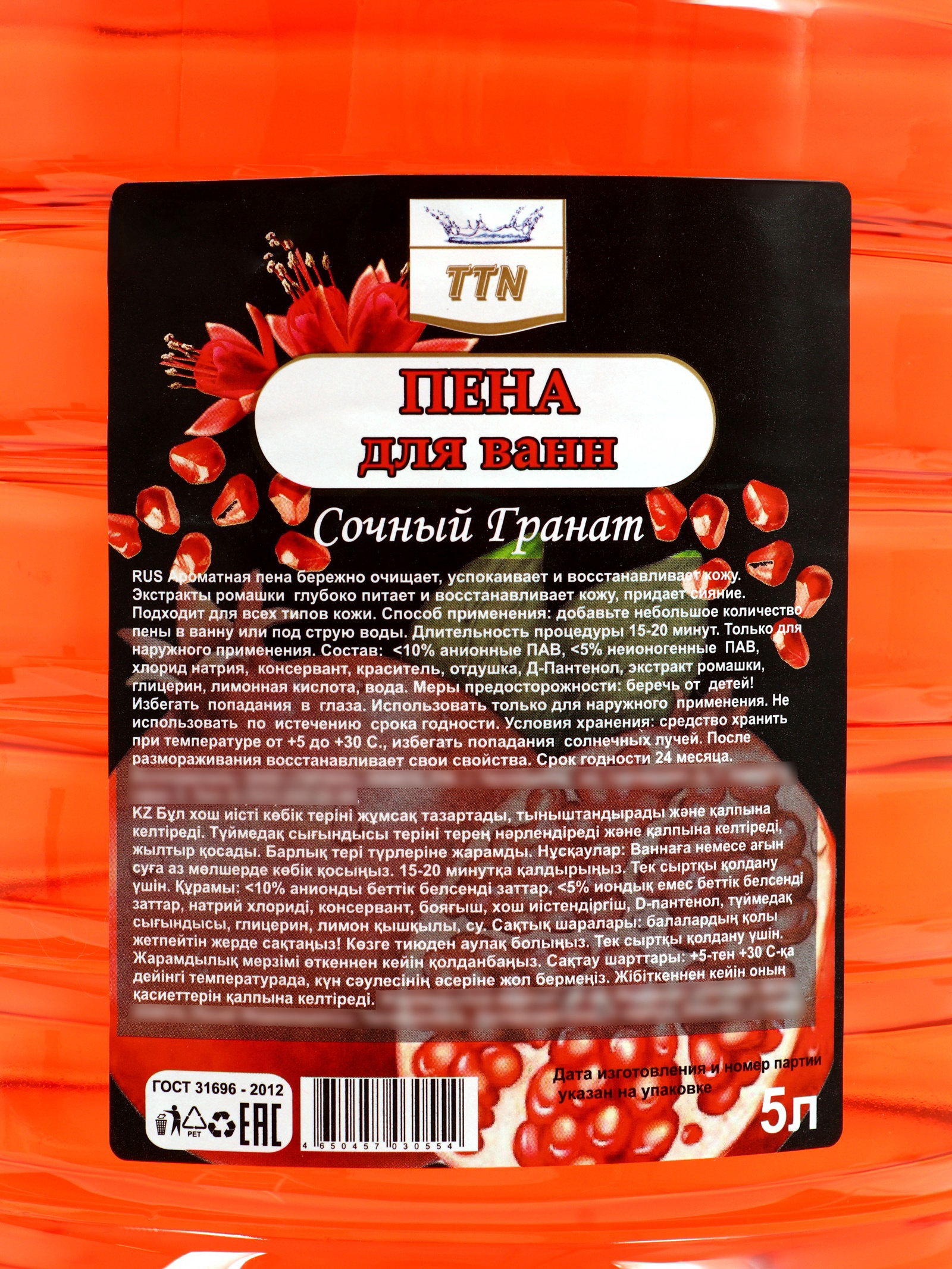 Пена для ванн сочный гранат, 5 л, 5000 мл., TITAN, Россия