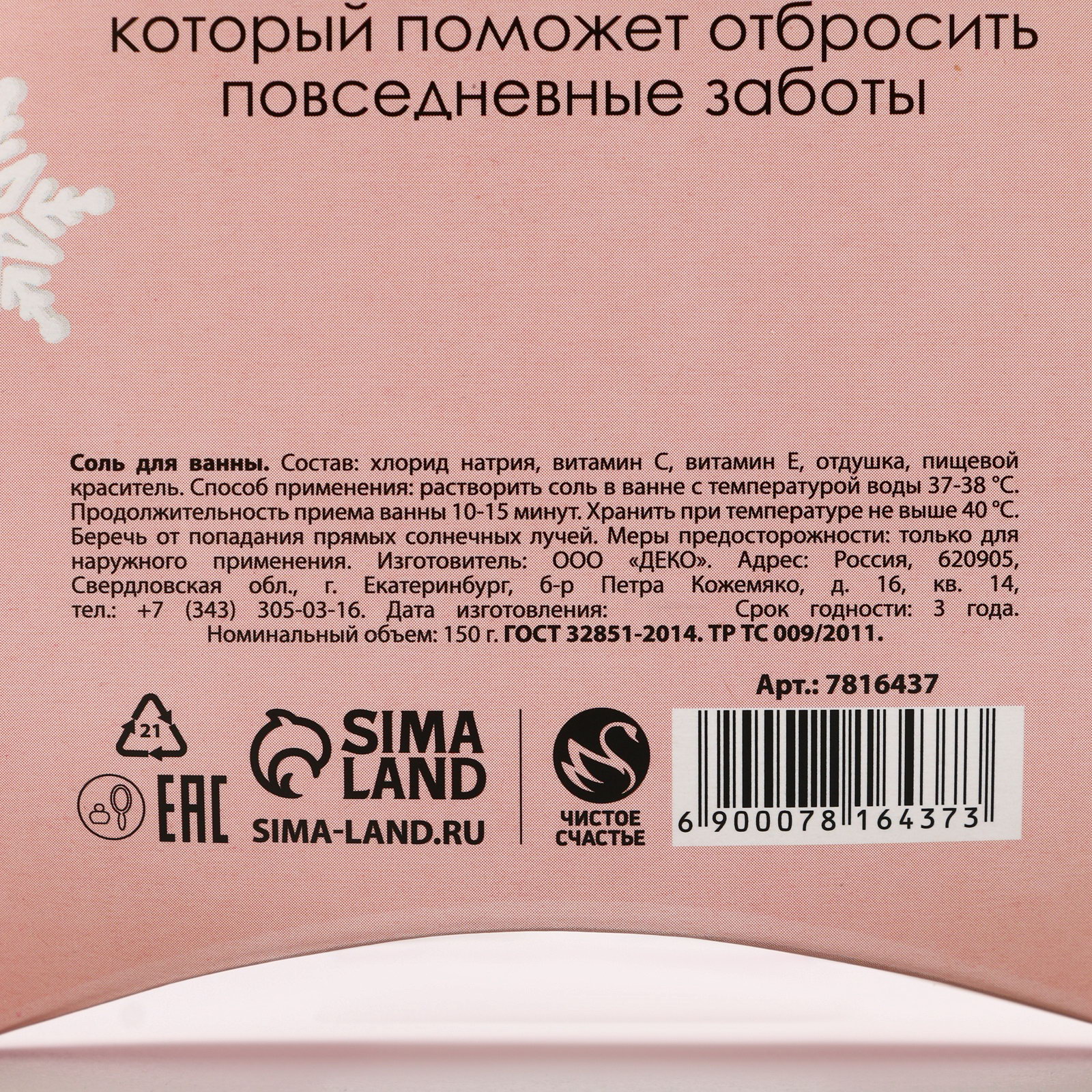 Соль для ванны "Верь в мечту!", 150 г, аромат ягодный, Чистое счастье, Россия