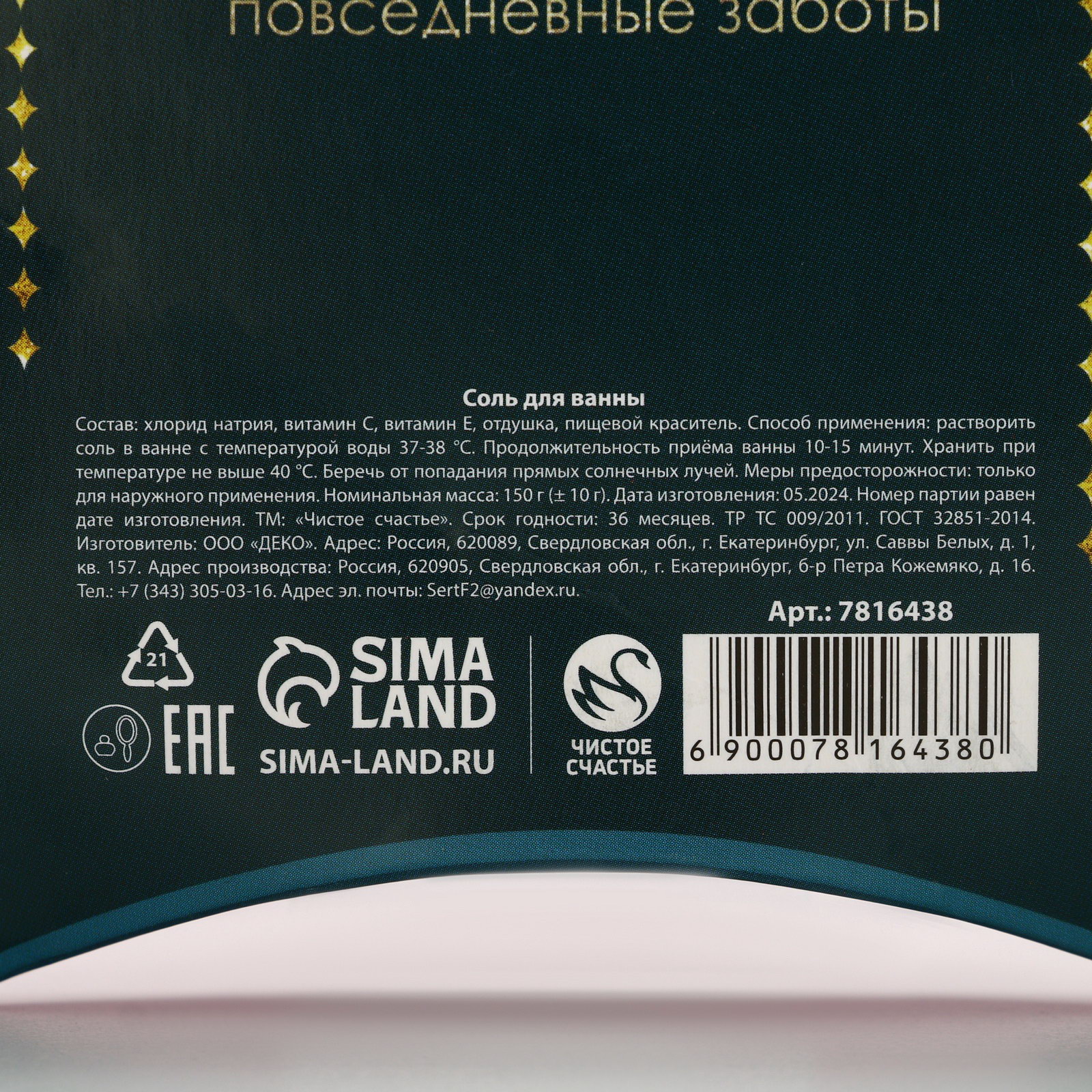 Соль для ванны "Верь в чудеса!", 150 г, аромат яблочного пирога, Чистое счастье, Россия